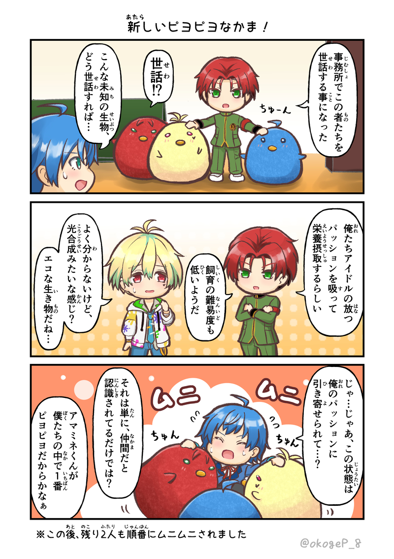 okogeP_8☆quiet followDONE【漫画】ちっちゃいクラファと、地球に優しい生き物たちとのふれあいストーリーです。練習用に描いたカラー漫画です。作画コストの関係で ちっちゃいVerで描いてるのもあって、いつもより世界観やらがフリーダム寄りかも。 #SideM Tap to full screen (size:1748x2480).Repost is prohibited Let's send reactions! freqpopularsnackothersPayment processing Replies from the creator Follow creator you care about!☆quiet follow okogeP_8DONE某都市伝説を解体するアレのパロディシリーズ、C.FIRSTセンターの天峰 秀が活躍するストーリーです。元ネタの大きなネタバレは無い&元ネタが分からなくても大丈夫なように作っていますが、少しでも気になる方は ご注意くださいませ。一応の全体ストーリーは考えているので、少しずつ追加していく感じでいく予定です。(最終更新:2015/10/19 NoriNoriTalk編を追加) 28 okogeP_8DONE(漫画)パバステや新刊のおまけペーパーに付けていた漫画です。振り付けのポーズの一部が「番組のお便りの宛先はコチラ!」的なやつに見えなくもないよな…って発想だけで描きました。 okogeP_8MENU【8/30 パバステ現地4th】お品書き8/30 Passion! VIRTU@L STAGE!現地4th in多摩【や28】焼きたて おこげ本舗パバステ4thのお品書きです。新刊の他、特典ポストカードやグッズなども用意しております。良ければお立ち寄りくださると嬉しいです!新刊のサンプルはこちら↓https://poipiku.com/5392936/12115233.html 2 okogeP_8INFO【パバステ現地4th】新刊サンプル『サイコーひとくちアラカルト』全年齢/A5/本文70p/CPなし/800円(会場頒布価格)8/30 Passion! VIRTU@L STAGE!現地4th in多摩にて頒布予定。315プロオールスター(49人+α)のひとくちサイズ漫画の詰め合わせ本です。49人それぞれが主役の1P漫画の他描きおろしや未公開作品なども多数収録。※後日通販予定 8 okogeP_8DOODLEクラファ最新ストーリーで、例の質問に対する反応が三者三様で良かったなーって思った勢いで描いたやつです。それはそれとして、Pは何であんなにハッチャケてたんだよ… 2 okogeP_8DONE鋭心先輩が応援団衣装のアレについてWhyな疑問を抱くお話を描きました。H◯Vコラボネタ。あのデザイン可愛いくて大好きなんですが、本人的には「???」な状態になってそうだなと思ったので… 3 related works ユキニョDONEクリスマス前半戦お疲れ様でした~ ユキニョDONEクリスマス前半戦お疲れ様でした~ うしおDOODLE締まったタイを緩める~ のフレーズが頭から離れなくなったので描きました ねねこDOODLE #SideMせいじちゅん…… NRGayaDOODLEコキュートス🤔 ご飯ヶ竹吾郎DONEpkmnのエリトレの服 つくね子PAST ぽーらDOODLEねむる翼mini ご飯ヶ竹吾郎DONEカラーパレットでリクいただいたもの recommended works むった☺︎︎︎︎☺︎PAST風船~🎈#SideM ご飯ヶ竹吾郎DONEびょんびょんびょんびょん 18.5.6(#アイドルマスターSideM #SideM ) ニカ@ぬかみそDOODLE妄想だよ。グループE超学。他校生徒会長のきょーすけと超学に通う親友まきおとお助け保健医しょーまさん。ブレザーの上に、だぼだぼのモッズコート羽織ってバサバサしてほしい。物騒な頭の使い方して欲しい。 ぽーらDOODLEモバ予告が可愛かったので ぽーらMAIKINGレコーディング風景 @真次DONE画像が切れてたので上げ直しです💦(前回のにリアクションありがとうございました...!🙏🏻✨)9/1次郎ちゃんお誕生日おめでとうございました👏🏻🎉🐎✨ 縺斐∩DOODLEステホワイトデーのコミュをちょろっと見た感想 _yt03DOODLEかきやすい ゆめこDOODLEオフショット朱玄 2