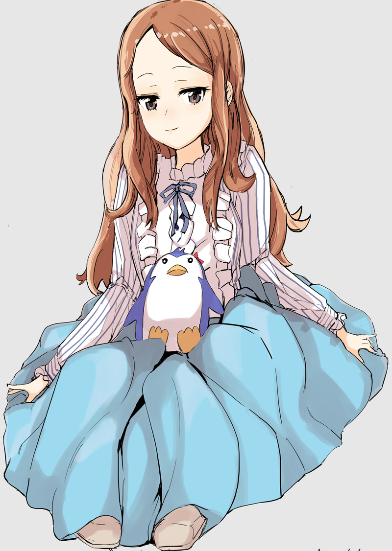 陽毬ちゃん完成したので、線画と共においておきます。色塗ったら寂しかったので急遽🐧追加しました。この位の頬染が好き。映えないけど