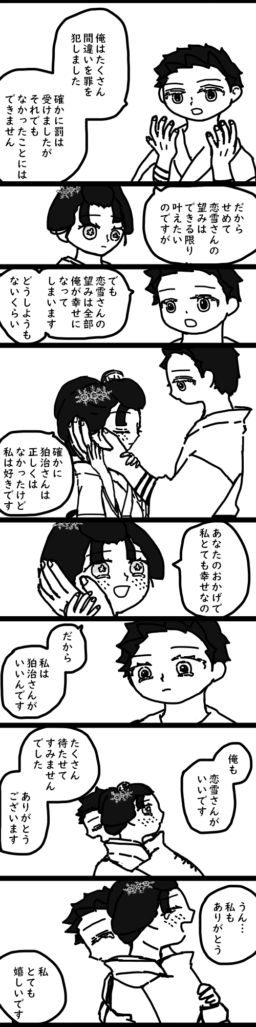 はなもり☆quiet followDOODLE前の同じ、地獄(?)で罰を受けた後の話描きたいところを描いているので唐突に始まり唐突に終わる狛治さんは罰を受けたからと言って罪悪を抱き続けると思っているそれでも恋雪さんと一緒にいたいという気持ちは消えないところが良…☺ Tap to full screen (size:500x2000).Repost is prohibited Let's send reactions! freqpopularsnackothersPayment processing Replies from the creator Follow creator you care about!☆quiet follow はなもりDOODLE忙しくてラクガキさぼってた…WEBオンリー準備しなきゃ…(;´・ω・) はなもりINFOwebコミ同人祭、スぺ拡大してくれたので申し込みました~!男女カプ(公式カプなので…)で申し込んだけど、たぶんいつもの感じの当主ペアのラクガキを描きたいと思ってます。http://pictsquare.net/j3a10jmno9z6c891pvyoy1dn8klz7z1w追記:サクカちょっと調整しました。出るジャンルは変えるつもりはありませんが、サクカはまた変わる可能性あります。 はなもりDOODLEwebコミ同人祭のサクカしよ~と思ったけど、今満了で申し込みできない…多分拡大してくれると思うのでその時に申し込む…2枚目は香月君に関しての弁解(?)です。香月君に関しては完全に私の趣味です。 2 はなもりDOODLEオールジャンルwebオンリーのサクカにしようかと思ったけどなんか気に入らないので没。でもせっかく描いたし勿体ない精神で普通にUP はなもりDOODLE朱夏姉生きてくれっ…! はなもりINFO羅針が示す夜空に咲く花 ありがとうございました!花束の絵はギャレリアに置いたのでよろしければ!https://galleria.emotionflow.com/70407/739738.html以下は引き続きポイピクに置いてますキ学https://poipiku.com/5396/12458615.html原作軸https://poipiku.com/5396/12458631.ht recommended works お肉屋さんDOODLE #金カム #ゴールデンカムイ #鯉登 お肉屋さんDONE #金カム #ゴールデンカムイ suminohudePASTなにかとお疲れであろう月島さんを癒して差し上げたいがために描きました 3 suminohudeDOODLE月島さん詰めました 15 suminohudePASTスチェンカ!!!!!! 4 山神のオモチDONE狼の子と 狼に憧れた男と 狼を友とした子 suminohudeDOODLEキロちゃん 広瀬こずえDOODLE Mの倉庫DOODLE息抜きに