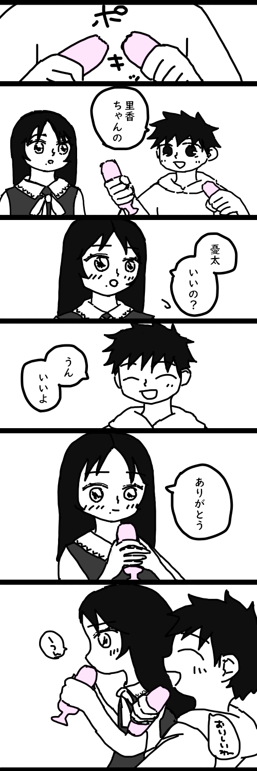 里香ちゃんはピンクで、憂太くんは青(サイダー?)のポッキンアイスが似合う気がする