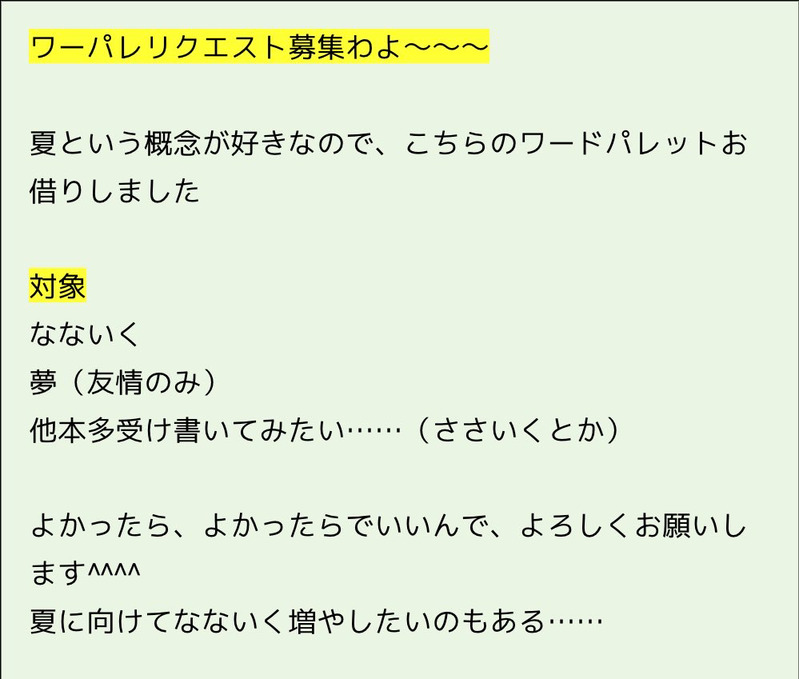 とりにく☆quiet followINFOhttps://twitter.com/toriniku028/status/1541050218904702976ワーパレリクエストしたい〜って思ったのでします!!!!よかったらよろしくお願いします!!!!!エアスケブ?のとこからやればいいのかな????あれだったら、箱からよろしくおねがいしますhttps://privatter.net/m/toriniku028 ##リクエスト募集 Tap to full screen (size:999x849).Repost is prohibited Let's send reactions! freqpopularsnackothersPayment processing Replies from the creator Follow creator you care about!☆quiet follow とりにくDONE今日の一人ワンライ。一緒にうな丼食べるなないくです 1345 とりにくDONE9/24のワンライスぺで書いたもの夏のワーパレからなないくを書きました……久しぶりのなないくだ~~~^^ 1685 とりにくCAN’T MAKE自分の理性に自信しかないほんだ(なないく)R18女体化エロです。脳直で書き進めていたものの、行き詰まって書けなくなってしまったので、上げておきます……続きを考えるのは画面の前のあなたたちです!!!!!! 6033 とりにくDONE教会には誰も来なかった(なないく)女体化いくの好きな人の話 3530 とりにくDONE教会には誰も来なかった(七行)女体化ナナがヤノさんにカステラ丸かじりを要求される話#なないく 1913 とりにくDONE教会には誰も来なかった(七行)女体化夏休みが明けてセンチメンタルになる話#なないく 3555