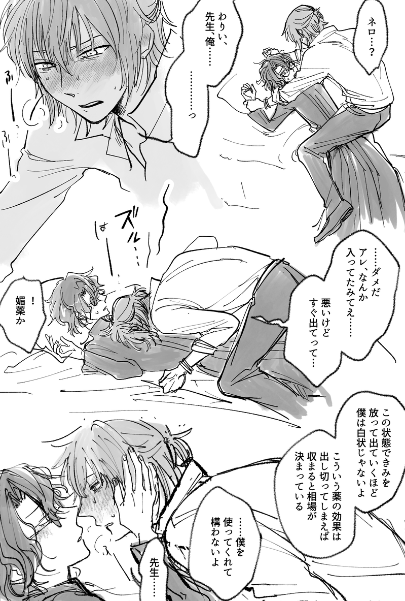 媚薬盛られたネロがファウストを押し倒しちゃって、先生に酷いことしたくないけど…というシチュ