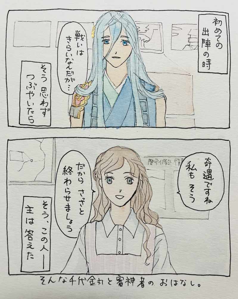 _akihc☆quiet followDONE千代さに はじまり #刀剣乱舞 Touken Ranbu #千代金丸 #女審神者 femaleInquisitors #千代さに forever #刀さに swordBlade Tap to full screen (size:2902x3642).Repost is prohibited Let's send reactions! freqpopularsnackothersPayment processing Replies from the creator Follow creator you care about!☆quiet follow _akihcDOODLE主に気づいておかえりって手を振ってくれる桑名江 _akihcDONE物吉貞宗×女審神者物吉くんとの恋仲を進展させたい審神者ちゃんのお話。審神者に特別な設定はありません。 2597 _akihcDONE【まんが】ぶぜさに「はじまり」豊前江が審神者の素顔に気づくはなし。 8 _akihcDONE【SS】亀さに「赤面」 1313 _akihcDONE【まんが】ぶぜさに「大きさ」付き合ってる前提 _akihcDONEフォロワーさんのつぶやきから思いついた則さに小話です 1901 related works weedspineDOODLE生き残ったが、勝ちだな。 あかみねTIRED放置というかほとんど供養に近い 浦添城ちゃんと千代金丸のカチャーシー画ていうか下絵まだ沖縄組が城プロでは浦添城ちゃんしか居なかった頃なのでこの2人のみ放置か供養か微妙すぎる _akihcDONE【まんが】千代さに「できない」 風間ナツキCAN’T MAKE #千代金丸 の髪で遊ぶ#北谷菜切 を描きたかった pokachiyoDONEへしちよ人魚パロ 最終話前回までのあらすじ:長谷部はちよ人魚に自由になれと言うが、ちよ人魚は長谷部と別れたくはなかった。また飼われる身で構わないからそばにいたいという気持ちをぶつけるも、長谷部は拒否し… 12 pokachiyoDONEへしちよ人魚パロその14。ポイピクにて不定期連載中。前回までのあらすじ:長谷部はちよ人魚の弟である治金丸に襲われるも、見事返り討ちにする。そして長谷部は、兄を助けに来たという治金丸に協力を仰ぎ、ちよ人魚救出のために動き出すのであった。 8 pokachiyoDONEへしちよ人魚パロ漫画もどき。その11。ポイピクにて不定期連載中。前回までのあらすじ:長谷部から貰った髪飾りを無くしてしまっちよ人魚。罪悪感のあまり涙を流すちよ。そしてその涙が美しい宝石に… 8 のわわわわんDONE pokachiyoDONEへしちよ人魚パロその10。ポイピクにて不定期連載中。前回までのあらすじ:ちよ人魚をどうにかして逃がせないか考える長谷部だったが、自分の力では無理だと思い悩んでいた。 8 recommended works どうみさんPAST #刀剣乱舞 10 AKANAMEDOODLEさみ #版権 #刀剣乱舞 mashika_kDOODLE長船本の表紙案。結局下を採用 #刀剣乱舞 #燭台切光忠 #大般若長光 #小豆長光 Ru_Na45PROGRESS #とうらぶ#鶴丸国永#刀剣乱舞 🌸すず🌸DOODLE今日は2月23日なのでにゃんにゃんみゃーで猫の日っちゃぁ猫の日なのでセーフですね!長谷部は猫というより犬だけど… Tsuitachi86DOODLE azutyaPROGRESS本日の落書きは、小狐丸。1年前に描いていたやつを清書し直した。#小狐丸 #とうらぶ #刀剣乱舞 YuinoDOODLEちょうぎ…すき…(アッ…腕装備左右間違え…) もず雑多DOODLE笑ってる青江くんが好きだ