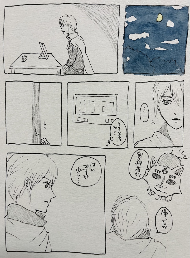 則宗さんから審神者にちょっかいかける話が多かったので、審神者の心のうちをちょっとだけ見せたいなと思って描きました