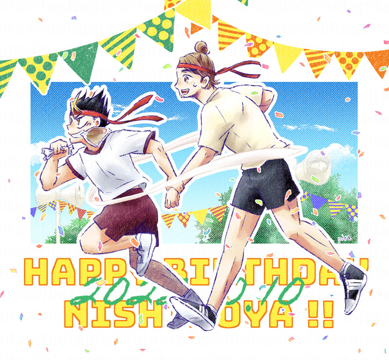 ノヤの誕生日のお祝いイラスト+派生のにしあず漫画。