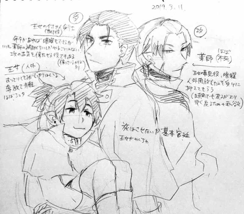 王女は身を躱すのが異常な程得意で身軽(だが何故か生傷は多い)雑メモ残したままで汚い…7月の本の目処がたったら本筋考えたい。