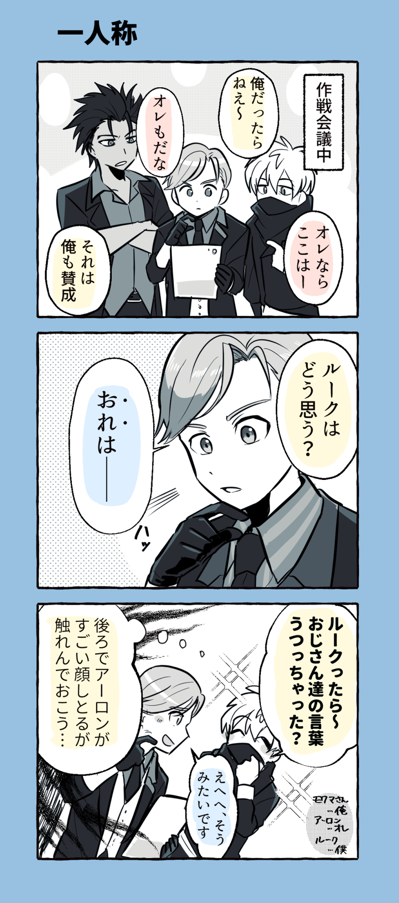 ご飯ヶ竹吾郎☆quiet followDONEバディミ アーロンとモクマさんとルークの一人称ネタ #バディミッションBOND buddyMissionBond Tap to full screen (size:878x1987).Repost is prohibited Let's send reactions! freqpopularsnackothersPayment processing Replies from the creator Follow creator you care about!☆quiet follow ご飯ヶ竹吾郎DONE 2 ご飯ヶ竹吾郎DONE 2 ご飯ヶ竹吾郎DONE 3 ご飯ヶ竹吾郎DONE ご飯ヶ竹吾郎MENU5/18 ミッコン10のおしながきです ご飯ヶ竹吾郎DONE🎃 2 related works みるぐるDOODLEチームBONDで王様ゲームやってみた①「2番はとびっきりの変顔を披露すること」リアルでの飲み会を控えている方も多いと思いますが、せっかく忘年会シーズンなのでこんなシリーズを考えてみました。しばしお付き合いください。 salt/NaDOODLEナデシコさんほんと好き みかん女SPOILERifの妄想の産物、ネタバレだし書きかけだし、でもBOND二周年の祝いしたくて先週から書き始めたけど、間に合わなかった。暇な時に書き上げよう。ある少年と幻想と呼ばれる男性がもし出会っていたら?です。少年は研究所に拾われるまでの間幻想の男性を保護していたとしたらっという妄想が結構前から浮かんでいたので……。 1349 みるぐるDOODLEチームBONDで王様ゲームやってみた②「3番はニンジャジャンのモノマネをすること」「やった!まかせてください!」 salt/NaDOODLEチェズレイとモクマさぁん! johnDOODLEA18までクリア 18日たのしみ h_marokuriDOODLEアーロン練習写真模写 ご飯ヶ竹吾郎DONEこの二人並んで目合わせてるだけで泣ける VtBteDOODLE注:バディミネタバレ注意CV内山昂輝の陰キャハッカーくん