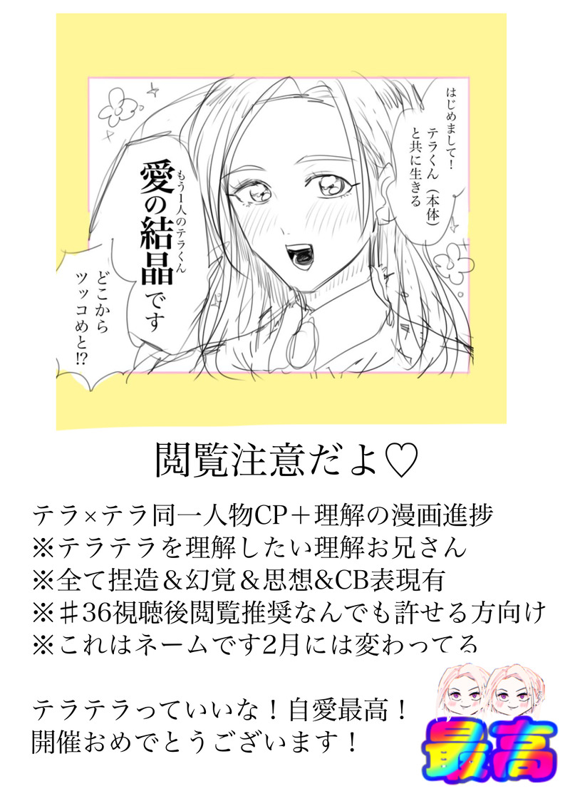 大好きだよ!☆quiet followPROGRESSカリパ テラテラ 開催おめでとうございます!!!!!!書く時間ないっす本当にごめんなさい!!!!!注意書き読んで大丈夫そうなかたどうぞ!!!!! #テラテラ terra x terra show all(+34 images) Tap to full screen (size:1240x1754).Repost is prohibited Let's send reactions! freqpopularsnackothersPayment processing Replies from the creator Follow creator you care about!☆quiet follow 大好きだよ!PROGRESSカリパ テラテラ 開催おめでとうございます!!!!!!書く時間ないっす本当にごめんなさい!!!!!注意書き読んで大丈夫そうなかたどうぞ!!!!! 35 大好きだよ!DONEネコセトラ ネットプリントローソン T3QGT3DZ2E L判白フチ有無どちらでも!ステッカーは白フチありで全体印刷されます!魔除けにしても良いと思います!※ファミマでも印刷出来ると思いますが試し印刷してないです!お待たせしてすみません!HAPPY!🌈✨🌈✨🌈🐡🐡🐡🐡🐡🔥🔥🔥 大好きだよ!DONEネコセトラ 展示漫画 カプ無しい5 サークル テトロドトキシン!作品 「 アンタねぇ~っ!〜テメェの〇〇は何色だ!編〜」出所後の一虎が千冬にどう心を開いていったのかを真剣に考えた結果、宇宙人との一悶着で仲を深めた世界線の幻覚漫画です!注意事項をお読みになりご納得いただけた方は yes をご入力願います。開催おめでとうございます! 40 大好きだよ!SPUR MEハンバーグ食べたい‼️‼️‼️‼️‼️ R18Gマイとら 即堕ちグロ カニバ 全て自己責任で見てください18歳未満及び地雷ある人は見ないでネ (KNKMリスペクト) 4 related works ☘️(みづき)DOODLE絵茶で描かされた賢者タイムの💛くんたぶんテラテラ equal609DONEテラテラ RBB💛×YB💛 まとめ 7 Bon Mariage!INFO✨💛💛に💛を贈ろう企画‼️✨期間 1月24日から2月24日まで‼️スタンプの💛を押して💛💛に黄色いハートの風船を贈りましょう‼️イベント終了後に贈られた個数を集計‼️後日、個数に応じた特別な💛💛を描き下ろし予定‼️期間中おひとり様何回でもOK💛💛以外のスタンプはNG‼️💛💛を沢山の💛でお祝いしましょう‼️ありったけの愛を贈りまくっちゃお‼️ equal609DONERBB💛×💛 〒ラくん同士でバトってます ちょっと不穏 6 🍤🍤🍤PAST 4 桜妓紅蓮MAIKINGおせりか(女体化)を書こうとしたら導入がなぜかテラテラになった記念 526 equal609DONE💛くんが〒ラニーしてる絵18↑? y/n 大好きだよ!PROGRESSカリパ テラテラ 開催おめでとうございます!!!!!!書く時間ないっす本当にごめんなさい!!!!!注意書き読んで大丈夫そうなかたどうぞ!!!!! 35