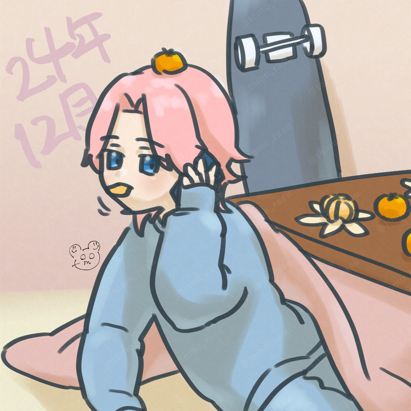 寒い中、スケボーに誘われて行きたい気持ちと家でぬくぬくしてたい気持ちで葛藤するナインくんです😌行きたいけど行きたくないけど行きたいね……☀️