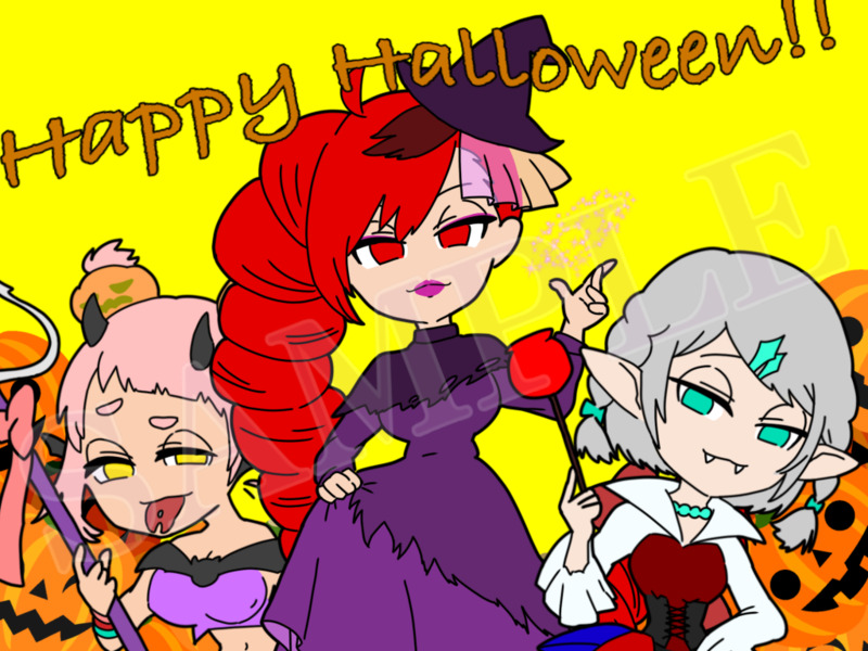 こちらは☻とも☻(@TMP_echi)さんのツイート用に描かせていただいたハロウィンイラストです🎃🦇🕸