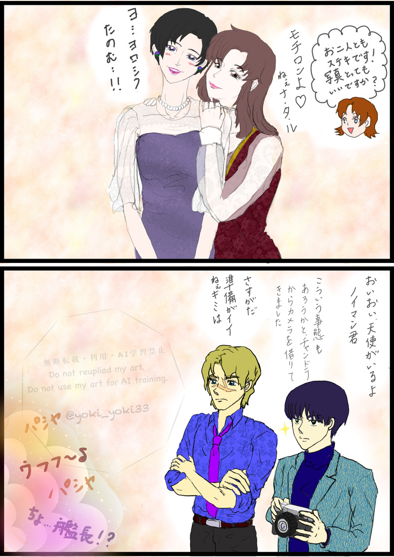 よさき☆quiet followDONEムウマリュノイナタでどこかのパーティに参加してる妄想元絵も添えて show all(+2 images) Tap to full screen (size:1240x1754).Repost is prohibited Let's send reactions! freqpopularsnackothersPayment processing Replies from the creator Follow creator you care about!☆quiet follow よさきDONEノイマンさんお誕生日おめでとう🥳ナタルさんもあちらでお祝いしてると思う🥂 よさきTRAININGカネバン有限公司の社長と右腕社長の含みのある悪者感が魅力的だし、右腕の冷たい感じあるけど相手のことを思っての言動だったりと、お二人のバランスがよき〜☺️他のメンバーも含めてもっと深い絡みが観たいなぁ会社名が中国系表記ということなので、中華風な背景にしてみた 2 よさきDOODLEノイ→ナタ記念日〜🥳監督×中の人のコラボレーション劇場が頭の中で捏造されまくる よさきMOURNINGご無沙汰してた間もゲームのノナ告白シーンとかをずっと妄想してたのですよあの場にミリィいたか忘れたけど、トルミリ居たらグータッチきめてたろうし、キラくんは唖然と眺めてそうw出来栄えは置いといて、妄想が様々な角度で広がって楽しかったです😌自己満足で描いただけですが、せっかく描いたのでこっそり供養いたします。 2 よさきDOODLE流血シーンあります。BLEACHのポエムと種のもろさわさん予告って割と合うんじゃないかと思って種48話での予告をパロってみた。あの予告はナタさんの心情でもあるのかなとずっと思ってる。 2 よさきTRAININGナタさん生存if🧭 スレンダーナタさんの細さを知りたいマリュさんノイナタ ムウマリュ recommended works ねこ/にゃむねこPAST #パトアス#ガンダムSEED#ザラ親子#腐 11 pachi@0089TRAININGイザークの前髪をどうやって描けばいいか分からん、、 pachi@0089TRAININGレイくんがギルを呼ぶ時かわいすぎるだろー 天かすDOODLEムウ・ラ・フラガ。一度は描いてみようと思ってたけど本編キャラ難しいね(それをいったら外伝も難しいけどさ) neko626PAST思い出の小箱。 yuringlesDOODLEキララク幸せになってくれーーーところで服がよくわからないことこの上無し… あやたかDONE nasaMENU2024.3.8(金)開催のEmerald Knight 10に参加しております。新刊「オンとオフの切り替えは指輪で」種自由後のアスカガが夫婦のお話です。イベントサイトでは、新刊・既刊を展示しております。※新刊の展示は3/8(金)~3/10(日)終日です。 4 ststst8DONEキラカガ、ムウマリュ、アスカガ、淳弥生をキキララ風にトレスしました。 4