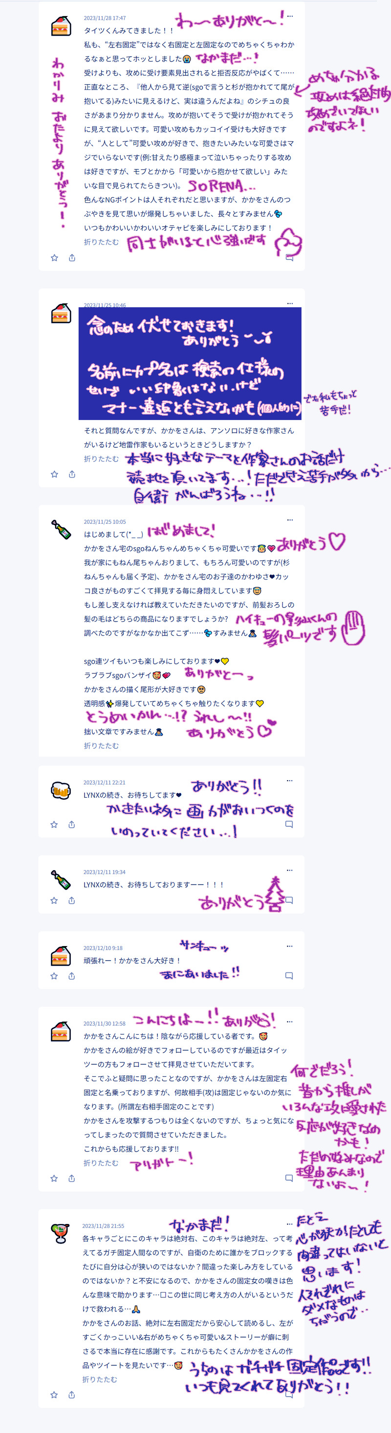 0gtaaan☆quiet followINFO🍻box返信です!いつもありがとうございます!!固定の仲間たちの言葉は私も励みになります✊ #乾杯返信 cheersReturnLetter Tap to full screen (size:1000x3661).Repost is prohibited Let's send reactions! freqpopularsnackothersPayment processing Replies from the creator Follow creator you care about!☆quiet follow 0gtaaanINFO🍻box返信です!!ものすごくお待たせしました!!!!いつも本当にありがとうございます😊😊 0gtaaanINFO🍻box返信です!いつもありがとうございますそしていつも遅くて申し訳ない……! 0gtaaanINFO🍻box返信です!!いつもありがと~~う! 0gtaaanINFO🍻box返信です!!お待たせしました~!!誕生日のお祝いもありがとうございました🙇♂️🙇♂️ 0gtaaanINFO🍻box返信です!遅くなってすみません;;あたたかいコメントに生かされていました✊ 0gtaaanINFO🍻box返信です!こんな時間になってしまった!!!いつもありがとうございます😊 related works 0gtaaanINFO🍻box返信です!いつもありがとうございます!!webオンリー中にも入れてくださってて嬉しかったです!あと連ツイ本のご感想もとっても嬉しい…ありがとうございました💜https://wavebox.me/wave/c1otdos9zkjm8811/ 0gtaaanINFO🍻box返信です~!!たいへんお待たせして申し訳ございません!!応援いただいたおかげ様で無事に本も出たしアンソロも発行できました😊ありがとうございます! 2 0gtaaanINFOいつものなれなれしい乾杯返信です!SGOシチュ送ってくれてありがとうございます!!!いい薬です 2 0gtaaanINFO🍻box返信です!いつもありがとう~!!おかげ様で連ツイ本脱稿しました✌ 0gtaaanINFO🍻box返信です!いつもありがとうございます!連ツイへの感想も新刊への感想もとても嬉しいです。https://wavebox.me/wave/c1otdos9zkjm8811/ 0gtaaanINFO🍻box返信です!いつも本当にありがとうございます😭励みになりすぎるッッ 0gtaaanINFO🍻box返信です!遅くなった~~!!たくさんのメッセージありがとうございました!!原稿がんばります!!! 0gtaaanINFO🍻box返信です!いつもありがとうございます!!ねん尾チャンのこともかわいがってくださって嬉しいです😊https://wavebox.me/wave/c1otdos9zkjm8811/ 0gtaaanINFO🍻box返信です!いっぱいメッセージありがとうございます😊LYNX好評でありがたい…! 2