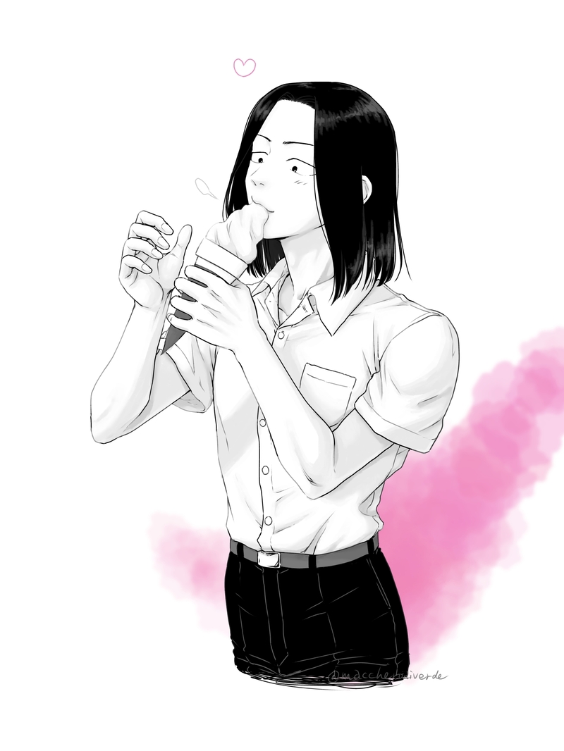 わたなべにアイス食べさせたかったらくがきとひとつのアイスをカプでやらしくシェアしてほしかったらくがき(?)