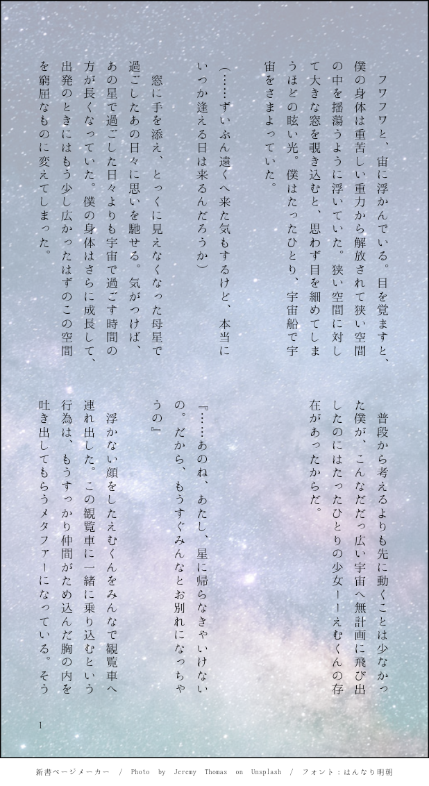 urararara_na☆quiet followDONEどこかの星の宇宙人だった🍬が旅立ってしまった世界で、🍬を忘れられない🎈の類えむ※確実にハッピーではない※ほぼ暗くて女々しい🎈の独白※あんまり描写ないけど年齢操作※ごま俺注意 #類えむ compare show all(+6 images) Tap to full screen (size:618x1132).Repost is prohibited Let's send reactions! freqpopularsnackothersPayment processing Replies from the creator Follow creator you care about!☆quiet follow urararara_naDONEどこかの星の宇宙人だった🍬が旅立ってしまった世界で、🍬を忘れられない🎈の類えむ※確実にハッピーではない※ほぼ暗くて女々しい🎈の独白※あんまり描写ないけど年齢操作※ごま俺注意 7 related works no_name_0911_meREHABILI久々に小説投稿します。輩(モブ)に襲われかけたえむちゃんを類くんが‥という、これまた在り来りなお話になってます。少しセンシティブな内容を含みますので、こちらに上げさせてもらいました。相変わらずの駄文主クオリティですが、大丈夫な方のみどうぞ。 924 はばくれSPUR MEI am lonely and High Spec Neet はばくれDOODLE正しいことを言っただけなのに類の地雷を踏んでしまいいきなりぶつけられたクソデカ感情を処理できず泣くことしか出来ない鳳えむ 3 heshikiri_cuteDOODLE※プロセカメインストーリーの内容を含みます。僕が考えた最強のみずえむ(←類)公式で絡む前のガッツリ捏造なんでポイピクのみにこっそり。文字めちゃ読みにくいです、ごめんなさい。 sorry_sameDONEポイピクテストの類えむ el_fr_moaMOURNING・供養文章なのでぶつ切り・エッな類えむを見たかったので自給自足・拘束プレイ これじゃMちゃんなんだよね(激ウマギャグ) 1911 機粒(きりゅう)DOODLE8月はバニーの日が多いので、何かのショーのためバニーの格好をする類えむを描きましたバニーさんの日は過ぎましたが、別にいつ描いたっていいですよね※とても雑です※細かいことは考えてないので頭空っぽにして読んでくださいOurUntitled4にて展示していたものです!現在はパスワード無しで閲覧できます🙌 3 heshikiri_cuteSPUR ME今日中には完成させたい(白目)類えむ漫画 全5p これはめちゃくちゃ頑張ったのに台詞で埋まってしまうページ gyubeom_lDOODLE #類えむ 19^ yes? recommended works sorry_sameDONEポイピクテストの類えむ heshikiri_cuteDOODLE類えむは付き合ってなくても付き合っててもこういう行き当たりばったりなデートしててほしい行く先々で類とえむが「この噴水とっても素敵だね〜!ショーに持って来れたら良いのに…✨」「わぁ、見てみて!このUFOキャッチャーの景品、宝石みたい!これたくさん集めて舞台で使ったらきっと綺麗だよ!」「ふむ、それなら…☺️」って永遠にインスピレーションを得る………………………… heshikiri_cuteDOODLE類えむスマイルオブドリーマー以降類くんにはえむちゃんに庇護欲みたいなのが芽生えてると思うんですよ… 4 はばくれDONE本当のあたしじゃないとかどうだっていい 2 heshikiri_cuteSPUR ME今日中には完成させたい(白目)類えむ漫画 全5p これはめちゃくちゃ頑張ったのに台詞で埋まってしまうページ oxy_holic_DOODLEガチのらくがきちょいエチ類えむ🎈🍬ダヨッ(*╹◡╹) 3 SipThanhDOODLEare you over 18?yes/no もずこんぶDONE5月イベントで頒布予定の類えむ漫画です!※鉛筆漫画(準備号)※付き合ってる 6 gyubeom_lDOODLE #類えむ 19^ yes?