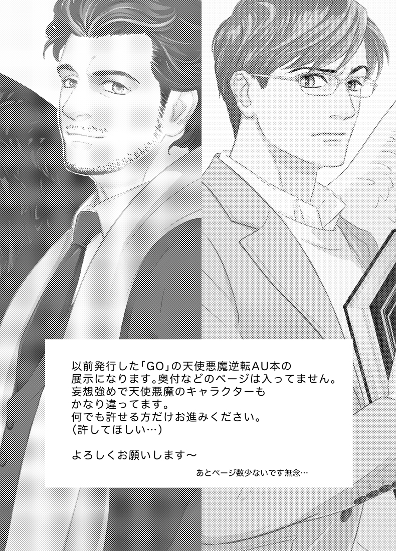 以前「GuardianAngel」というタイトルで出したGO逆転AU・悪魔アジラフェル×天使クロウリー本の本文です。