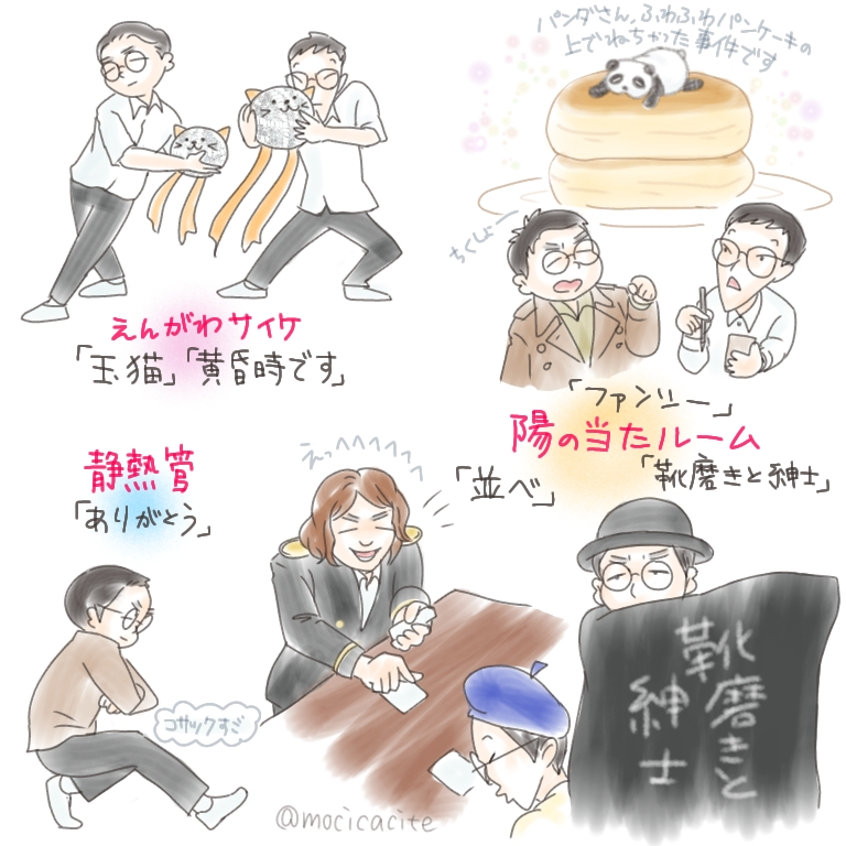 mocicacite☆quiet followDONE男ブラさんのコントのダイジェストの中で気になったものを描き出してみました。ホント、(これ何?)なコントで本編観たいんですけど!!2枚目は玉猫が可愛かったのでメインで。Twitterのアイコンにしました。ミラーボール描くの難しい…😫💦 #男性ブランコ maleTrapeze #男ブラ maleBra #玉猫 ball-tossedCat #Sダイジェスト sDigest show all(+1 images) Tap to full screen (size:768x768).Repost is prohibited Let's send reactions! freqpopularsnackothersPayment processing Replies from the creator Follow creator you care about!☆quiet follow mocicaciteDONEぼる塾に「帰れぇ〜!」って言われた後の逃げ方、あまりにもコロコロコミック🤣 mocicaciteDONE黒幕くん と 虚無ちゃん mocicaciteDONEバナぽんズ に改名!? mocicaciteDONEうふふ と にへへ mocicaciteDONEチョコミント よりも ロックな音符〜⚡️ mocicaciteDONEたたみマット死守し隊①ひらいカカポ②ネコまさあき 2 related works mamemo_ura_81DOODLEゲストに出たライブで猫耳つけてたと聞いて。これは浦先があの女子高生たちに付けられるやつ「あんまり大人をからかうんじゃないよ」 mocicaciteDONEありがとうの鱗粉振りまきニョロリーニ 6 mamemo_ura_81DONE浦井の枕もと 第二回より花火大会見るつもりが、夜空を見ながらの鰻の白焼に…何をしてもオチが哀愁なところが好き😂 mamemo_ura_81DONEらいぱち先生の体育の授業 より笑い転げる浦井さん本気で行く平井さん体操服イン姿での体型の差🤭 3 mamemo_ura_81DOODLEエイフォー瞳子さんを見守る寺田部長とひらこ先輩 mamemo_ura_81DOODLE浦井さんの手のモゾモゾはきっと違う生き物なんだよ、というフォロワーさんとの会話から。きっとミギー、いや、ウラーが寄生してる mamemo_ura_81DONEみーちゃんと父ちゃん数年後は、きっとこう。 mocicaciteDONE『ウンイイヨオバケダヨォ』感情無くなった同僚を操作するとか正気の沙汰じゃない 2 mamemo_ura_81DONEラヴィットロックより倒される直前白Tにジャケットでノリノリ 2