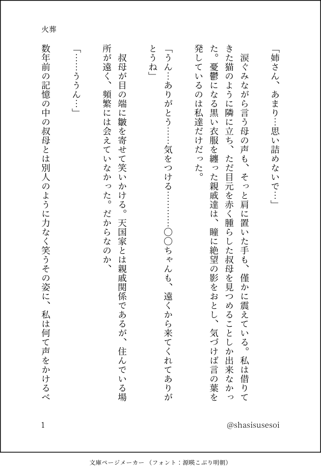 shasisusesoi☆quiet followMOURNING天国獄と兄と火葬場の話(親戚のモブ視点)(よく分からんので供養)身体が焼かれてなくなることに急に死を実感して取り乱すひとやが見たかった、多分……(火葬場に行ったことないので間違いが多いです)最後の神様と仏様って言うのは未来の「彼ら」を表してます show all(+5 images) Tap to full screen (size:630x928).Repost is prohibited Let's send reactions! freqpopularsnackothersPayment processing Replies from the creator Follow creator you care about!☆quiet follow shasisusesoiMOURNING天国獄と兄と火葬場の話(親戚のモブ視点)(よく分からんので供養)身体が焼かれてなくなることに急に死を実感して取り乱すひとやが見たかった、多分……(火葬場に行ったことないので間違いが多いです)最後の神様と仏様って言うのは未来の「彼ら」を表してます 6 shasisusesoiDONEひふど… 4 shasisusesoiDONE1118(いいひとや)の日!じゅしひと!全然上手く書けなかったよひとえも〜〜ん 2 shasisusesoiDONE学生時代の寂獄(雰囲気が獄寂っぽくてすまない…)スリット・夢精ネタがあって書いててよく分からなくなりました!そんな文章です! 3 shasisusesoiMOURNING妄想ツイに少し肉付けした感じだけど全部が微妙になってしまったので供養(未完成) 2 recommended works CaiDOODLE4D给姐姐抠逼 鬼忍者可愛いDOODLE⚠メイド服 男の娘 ⚠クレナイ君とアオイさんメイド服きせてみた♡ うみんちゅPROGRESS水彩画のつもりだけど破綻する未来が見えるので載せとく stepswordsenPROGRESS※ NSFW 🔞⚠️【カゲプロ】黒コノエネ/クロエネ/冴えエネ 🖤💙🐍🐇【KagePro】 KuroEne/SaeEne パス:18歳以上ですか? → (yes/no) (3文字)PW: Are you over 18? → (yes/no) (3 chars)D/S roleplay. Maid Kuroha and MR2 Kuroha domming Ene 💞 4 なす畑2号店SPOILERまだ間に合う!愚かな推理! 4 nunununenenenuDOODLEシルフェリ 6 二階堂web展示用PAST寮長になったら⚠前の投稿「apricot fizz」と微妙に繋がっています。そちらをご覧ただいてからお読みいただけると幸いです。⚠イグニ前々寮長×1年イデア⚠設定捏造🗝/イベント共通 8 WarmiiKhaenDOODLE乱七八糟的别管了哈哈哈18+?(y/n) 6 tobi_kgbPROGRESS【チヒ伯】進捗④PASS:18↑?(y/n 小文字で単語を入れてください)いちゃらぶ初夜本が多分出ます…!!!!(絶賛原稿中です!!!) 38