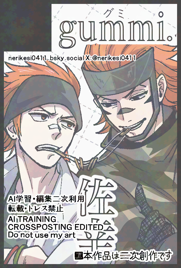 練消ゴム太郎☆こそフォロ尻を叩く5/5超戦煌 佐幸スペ申し込みしました タップで全画面(原寸:601x890)無断転載禁止 練消ゴム太郎尻を叩く5/5超戦煌 佐幸スペ申し込みしました 練消ゴム太郎お知らせ2025年12月21日発行【紅にまじわらばあかくなる】サンプルです*ほんのり佐幸A5/32p予約開始になりました(今週中に頒布開始予定です)https://www.melonbooks.co.jp/fromagee/detail/detail.php?product_id=3471564 6 練消ゴム太郎過去のを晒す2023年スパコミ超戦煌!発行の佐幸本再録です。紙の本を手にとってくださいました皆様ありがとうございました! 23 練消ゴム太郎過去のを晒すラブコメ(仮)パスワードはツイッター https://twitter.com/mogimogi_410 (鍵)でお知らせしてます。 35 練消ゴム太郎過去のを晒す寄稿再録パスワードはツイッター https://twitter.com/mogimogi_410 (鍵)でお知らせしてます。 11 練消ゴム太郎過去のを晒す火にようじん。*支部から避難中パスワードはツイッター https://twitter.com/mogimogi_410 (鍵)でお知らせしてます。 6 おすすめ作品 crq1taoらくがき 2 Haro99236026できたリクエスト2『子だくさんに恵まれた幸せ夫婦キバユウ』全年齢です。注意※未来妄想。オリジナルの子どもが多数登場します🔑kyon45241227 Nananhomhomネタバレホテルアンデルセン 現行未通過NG 自陣はOK!トアキル君かわいいからしょうがないよねー???距離感おバグりママとトアキル君 はっちらくがきミニ 6 takoppukuらくがき[vantayu] man why yall hereare you 18+? (yes/no) SnK_OC013らくがきซื้อ 1 แถม 2 ค่ะ 🌖👄🌔(y/n)? sakura1403bras1らくがきタヌキって、日本では普通にいる動物だけど、海外的には珍獣に近いから、まほやくの世界で、賢者様の世界のタヌキが出てきたらどう反応するんだろうとかいたやつ。 nyak_138らくがき반인반수 미노타우르스 뫼르소×산제물 꼬마 히스클리프/🐂🌇🧒⛈/ooc주의(?)/놋쇠황소 베이스 뫼르소(진짜소)와 냅다 바쳐진 어린 히스클리프를 기반으로 이케저케 짠 적폐 설정+그림 5 みずきらくがきこのタイプの岡本信彦に弱くってェ……