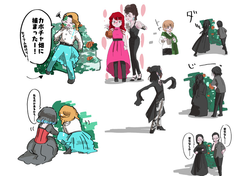一枚目のヤオさんとセイラムさんの下りは多分トラブルなんだと思うんですが、二人の関係性が現れててとっても印象に残ったので描いちゃった。二人、語彙も似てるし薬の話もあるし、付き合い長そうだなぁ