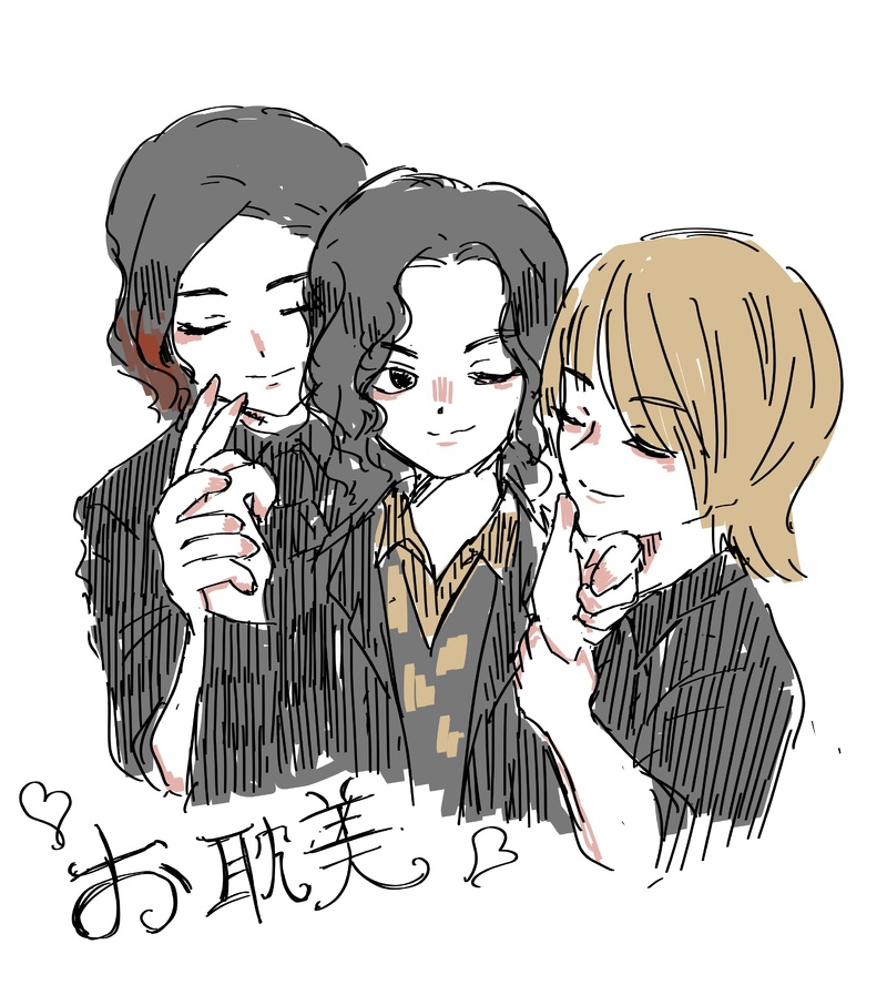 黙ってればお耽美な三人大好き。話しだすと真ん中の人を中心にさわがしくなるのも含めて大好き。絡みの写真がこの世に存在してるんですよねーーーてぇてぇね!!!!!!!!