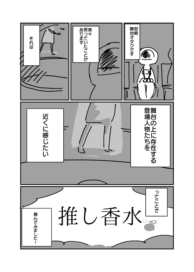 1時間〜2時間しか存在することを許されない舞台の上の登場人物たちを少しでも近くに味わえる推し香水。次はリュカオン様とクドリャフカイメージ降水がほしい。どっちも重そう