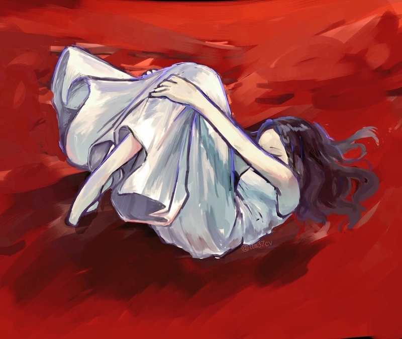 1)ミヨちゃん。最初のシーンが胎内に居るように見えたのでそのまんま描きました、お衣裳が理解しきれてなくて全然違うんで再演までに勉強します……!