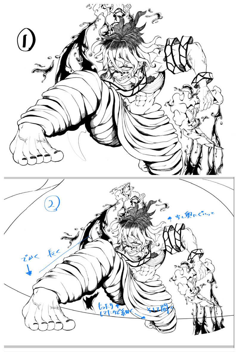 ①下に堕姫ちゃん描いてたので小さめ。