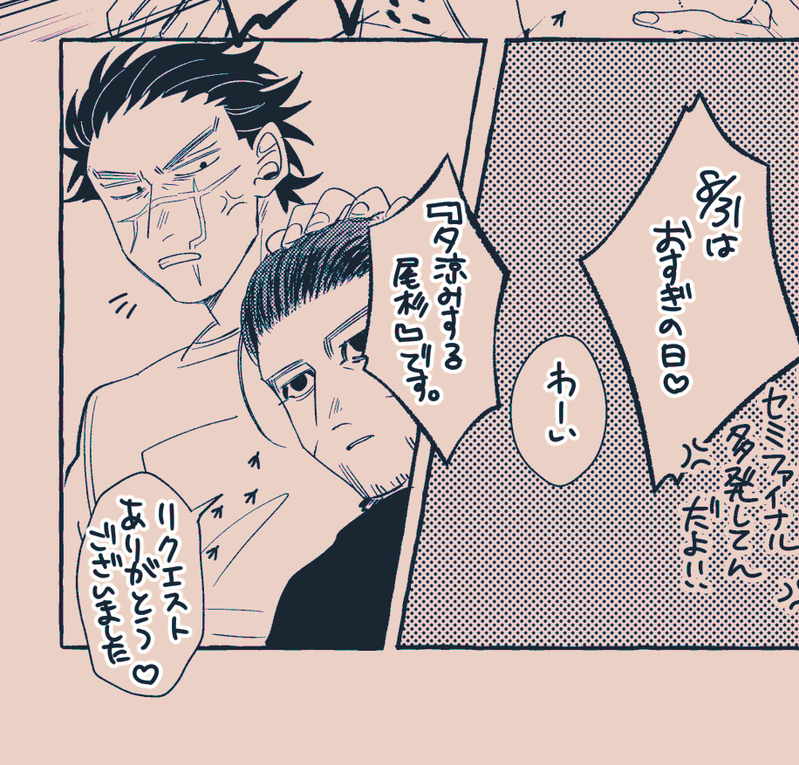 three3quads4☆quiet followDOODLE【尾杉で夕涼み】リクエストありがとうございました! #尾杉 Ogata/Sugimoto show all(+2 images) Tap to full screen (size:916x877).Repost is prohibited Let's send reactions! freqpopularsnackothersPayment processing Replies from the creator Follow creator you care about!☆quiet follow three3quads4DONE20221016 百の傷痕一の銃弾2での無配漫画(尾杉)です。同人誌【Pull up if I pull up.】と【TATTARRATTAT】の後に読んでもらった方がわかりやすいかと思います。(スミマセン…;;) three3quads4INFO尾杉新刊サンプル【TATTARRATTAT】A5/44P/成人向けイベント頒布価格600円予定20221016 百の傷痕、一の銃弾2西2ホール ナ50a:大三元 にて 8 three3quads4PROGRESS次の尾杉ブックの進捗(まだペン入れしてる( ^ω^)・・・) three3quads4DOODLE【尾杉で夕涼み】リクエストありがとうございました! 3 three3quads4DONE20220827~28 好きスギッ!motto!新刊&イベント展示おまけ漫画 three3quads4PROGRESSこのあとの塗り込みでなにもかも滅茶苦茶になる前に一回うpさせてください…✍🤪 related works shimo_hakariMOURNING攻めのシャツカーテンがかかるので供養太ももで隠れるから小さくみえる気がする 696969KINWARICHMEMOน่ารักๆ 💖💖💖💖(osugi)What Sukimoto likes to eat?(answer in English) 3 馬刺梅(梅)DONEって未来があればいいなぁ doll197666DONEポッキーの日で尾杉。ポキゲしてません。 3 shimo_hakariMAIKING誰か色塗ってくれねぇかな トミーPAST2021年おにしさん主催の尾杉職業アンソロに寄稿したものです。杉元さんの職業は…秘密のまま😄 11 シオンDONE尾杉、蓄光アンソロのWeb再録です。 5 giselle_crowngkPROGRESSんぐー @mitakarmDOODLEツイに上げた時に画像が悪いのがあったのでまとめました。ツイに上げなかったオマケ付き。練習絵。 5 recommended works トミーBLANK再録するにあたって、1冊目と3冊目だけは全面的に書き直そうという謎の取り組みをした形跡です。下書き状態ですが、文字だけれてアップしてみました。全部で18枚。1冊目の半分ぐらい。18枚目のスギモヨさん、どう加工するつもりだったんだろう… 18 aYa62AOTDONE幸せそうな尾杉です。 1444 maemochi_MOURNING尾杉「これも愛の形ってわけさ」突然上司が呼び止めてきて、惚気け始めたと思ったら雲行きがどんどん怪しくなっていって最終的にやっぱり惚気られた話(嘘は言ってない) あざきDONE【現パロ】にょたじゃない尾杉です 2 Qき(くき)DONE飛行機内での尾杉。 3 three3quads4DOODLE診断メーカー尾杉+勇漫画 3 Qき(くき)PAST尾杉の日。8/31。遅刻してもいい! 河東🌻PROGRESS尾杉原稿進捗。いい感じにラブラブっぽく見えるかもですが、話の設定はアホです。 698 three3quads4DONE20221016 百の傷痕一の銃弾2での無配漫画(尾杉)です。同人誌【Pull up if I pull up.】と【TATTARRATTAT】の後に読んでもらった方がわかりやすいかと思います。(スミマセン…;;)