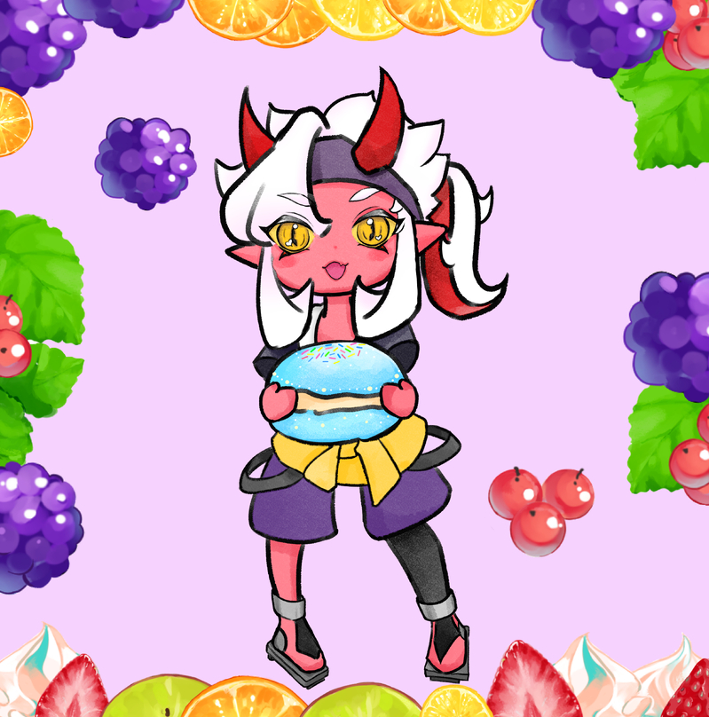 チビキャラクレナイ君に「青いマカロン」プレゼントしたら目キラキラさせて喜んでくれた♡