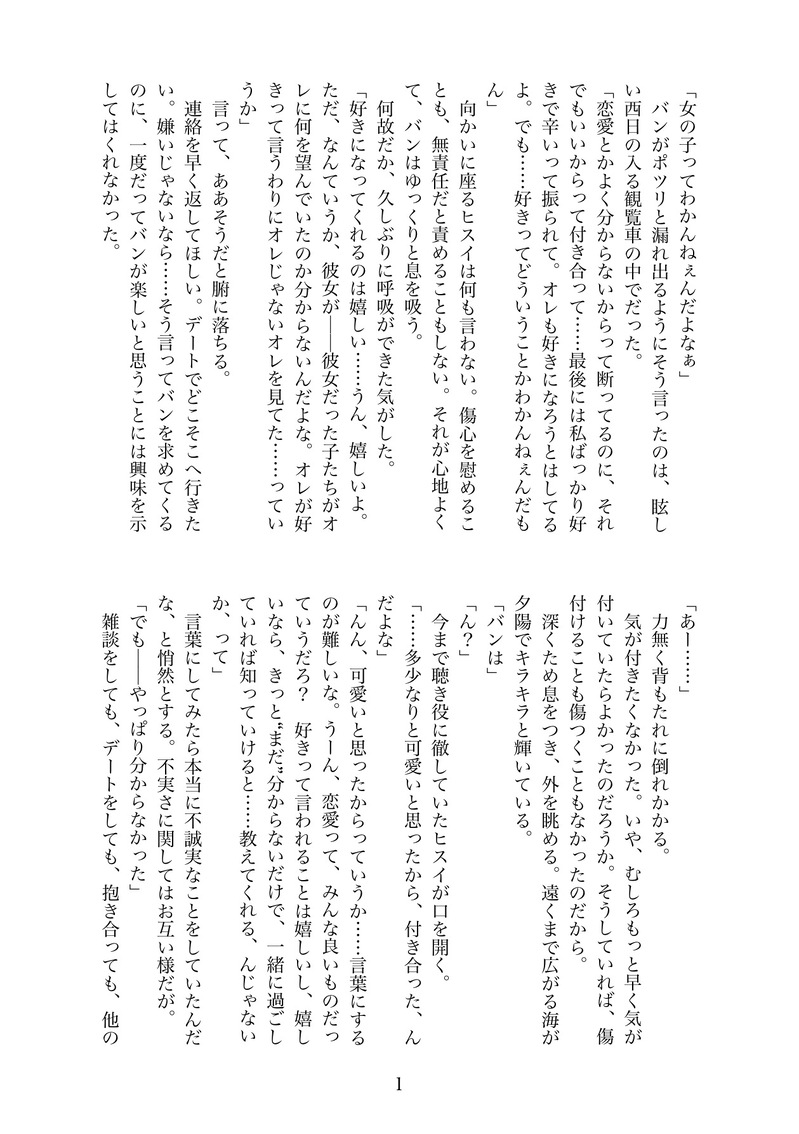 おかうみ☆quiet followDOODLE小説と挿絵ダヨ〜。またバンヒス未満、今度は高校生設定です。キラキラ可愛いバンヒスちゃんいません。バンがヒスイ意外と付き合ってた描写があります。 #撃メン【腐】 #バンヒス bandhiss show all(+2 images) Tap to full screen (size:1259x1786).Repost is prohibited Let's send reactions! freqpopularsnackothersPayment processing Replies from the creator Follow creator you care about!☆quiet follow おかうみDOODLEちっすの日年長組(女体化) おかうみDONEいつぞやの書きかけ、続きを書きました。よろしくお願いします。18↑(Y/N) 3338 おかうみMEMOバースデープレゼントにいただいた小説の実況感想です。書き連ねていたらそ総文字数5,300(四捨五入)になっていました。あの、ですので、一番下まで遡って、『読了しました』から読んでいただけるとお時間取らせずに済みます…すみません…めちゃめちゃ楽しかったんです… 5300 おかうみDOODLE女体化大好き② 攻めの女体化なのでワンクッションしておきますね#ほぼ日撃メン おかうみDONE明けましておめでとうございます。昨年は大変お世話になりました。本年もどうぞよろしくお願いいたします。また日々寒い日が続いています。二年ぶりにインフルエンザも流行しているそうなのでお体に気をつけて、温かくしてお過ごしください。 8 おかうみDOODLEメノウ兄ちゃんごめんなさい 2 related works おかうみDONEいつぞやの書きかけ、続きを書きました。よろしくお願いします。18↑(Y/N) 3338 おかうみMAIKING昨夜の、寝落ちるまでにバンヒスちゃんどこまで書けるかなチャレンジ(失敗して大変なとこで途切れてます)18↑(Y/N) 679 おかうみDOODLE小説と挿絵ダヨ〜。またバンヒス未満、今度は高校生設定です。キラキラ可愛いバンヒスちゃんいません。バンがヒスイ意外と付き合ってた描写があります。 3 かずさ○◇DONEバンヒスのこんな馴れ初めあったらいいな、で描いてTwitterに上げた漫画。ぜんぶわたしの妄想です。 14 おかうみDONE前日比-5℃で寒過ぎたのでハムスター団子になるメンカーたち書きました。 2 おかうみDONE付き合ってないバンヒス未満。バンくんがちょっとおばか注意。ド頭からチューしてるのでワンクッション 7 おかうみDOODLE記者会見でマウント取り散らかすアラサーバンヒス成人後捏造してるのでワンクッション 2 おかうみDOODLE事故チューまんがおまけ②終始(表紙漢字間違ってるね)素っ裸なのでr18です18↑(Y/N) 5 おかうみDOODLE女体化まとめ(真冬に水着) 6
