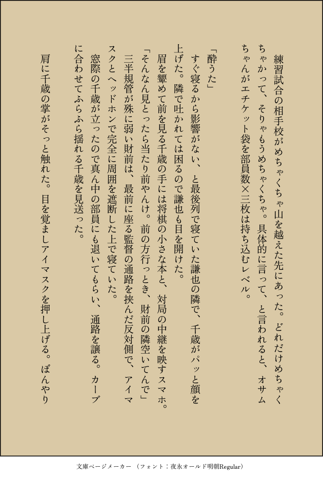 🐟🍊☆quiet followMOURNINGメモに残ってたので見せつける千と見せつけられる謙と振り回される財 #ちとひか aFewDays show all(+8 images) Tap to full screen (size:630x928).Repost is prohibited Let's send reactions! freqpopularsnackothersPayment processing Replies from the creator Follow creator you care about!☆quiet follow 🐟🍊DOODLE🎤 6 🐟🍊MOURNINGけんいち 4 🐟🍊DOODLE財前光が恋だと気付いたのは鏡の向こうの自分の顔を見たとき です。#shindanmakerhttps://shindanmaker.com/558753昔の掘り出し物です 4191 🐟🍊DOODLE※外見捏造 🐟🍊DOODLEドムサブちょっとだけ 944 🐟🍊DOODLEドムサブとりあえずさわりだけ 1915 related works 🐟🍊MOURNINGメモに残ってたので見せつける千と見せつけられる謙と振り回される財 9 smdy_chPASTテスト 2 recommended works にしきDOODLEぬいぐるみの頭を撫でるさとはるさん#horakawaii #shindanmakerhttps://shindanmaker.com/769002『しんけんなかおでかんがえこんで、でもさわるてはやさしいおとこのひと、めずらしくないよ』 sirohumoDOODLEあなたはデントコの「もちろん一番に決まってるじゃん!」という台詞を使った1コマ漫画を描きます。#この台詞を使って1コマ漫画 #shindanmaker SasameDONE細雪んとこの獠香さんは『もう逃げ切れない』をお題に、140字でSSを書いてください。#shindanmaker恋人未満の獠香ちゃん。こんな時があっても良いかなって妄想(*ノ>ᴗ<)テヘッ 高間晴TRAINING貴方は晴のルクアロで『大切だったはずなのに』をお題にして140文字SSを書いてください。#shindanmakerhttps://shindanmaker.com/375517 ヒツジっこDONE診断メーカーネタの陸空です。空ちゃ、陸のことになるとめちゃくちゃ嬉々として「陸はね~陸はね~!」っていろいろ余計なことまで喋っちゃうと思うんだあ……あなたはヒツジっこの陸空が顔を真っ赤に染めながら「頼むから黙っててくれ頼むから」という台詞を呟く1コマ漫画を描きます。#shindanmaker #この台詞を使って1コマ漫画https://shindanmaker.com/528633 2 さわらDOODLE貴方はさわらのアシュグレで『ひねくれた告白』をお題にして140文字SSを書いてください。#shindanmakerhttps://shindanmaker.com/375517140字を毎回無視するやつ 2766 SasameDONE貴方は細雪んちのRKで『美味しそうに見えた、なんて末期だ』をお題にして140文字SSを書いてください。#shindanmaker 201 ななこDONEななこさんのお題「体操服(ブルマ)を着ている孫権」#shindanmaker #さんむそ衣装お題できました!!!!!!!! selen_bkmnDONE貴方はクレカレで『叶わない約束なんて、しないでよ』をお題にして140文字SSを書いてください。#shindanmakerhttps://shindanmaker.com/587150 140