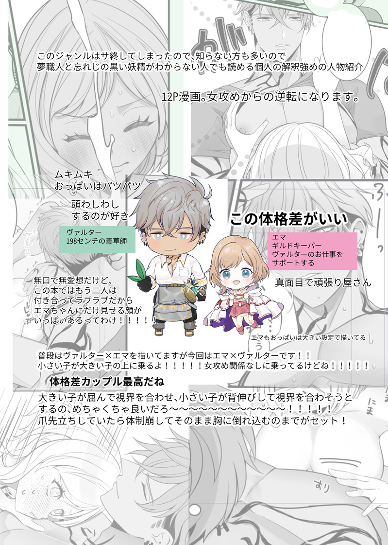 むむたろう☆quiet followINFO26日の女攻めウェブオンリー展示エマ×ヴァルター パスワード変更しました。あなたは18歳以上ですか yes か no pixivにも公開されております!スタンプありがとうございました〜! #女攻めwebオンリー #エマヴァル #ゆめくろ dreamyFuture #女攻め Girls Attack #体格差 Size Difference show hide show all(+12 images) Tap to full screen (size:3638x5102).Repost is prohibited Let's send reactions! freqpopularsnackothersPayment processing Replies from the creator Follow creator you care about!☆quiet follow むむたろうDONE10月18日女攻めがみたいWebオンリーの展示になります。パスワードはイベント共通パスワードになるのでイベントに参加されていない方は後日pixivにて公開いたしますので、それまでしばらくお待ちください。 11 むむたろうINFOパスワードは成人ですか?【yes】か【 no】で。6月28日大阪ゆめくろオンリーの新刊のサンプルになります。ルージュ×エマ(R18)【愛は希うもの、借金は返すもの】ネムネム様との合同本になります。後新刊もう一冊執筆中(ホロエマ)小部数の再販なしです。よろしくお願いします〜! 14 むむたろうINFO26日の女攻めウェブオンリー展示エマ×ヴァルター パスワード変更しました。あなたは18歳以上ですか yes か no pixivにも公開されております!スタンプありがとうございました〜! 13 むむたろうPROGRESS今月コソコソ描いてた漫画たち 3 むむたろうDOODLEいろんな原稿の進捗たち すぐ出しすぎちゃうからこれだけ・・ね!!全部よろしくお願いします〜〜〜〜〜〜〜〜!!!!!!!! 5 むむたろうPROGRESSただの原稿の進捗なのでフォロ限。今回お話が2本立てになってます・・!今月には脱稿したい気持ちでいます。 3 related works ステゴザウルスDOODLE推しカプ初描き記念。擬人化アナログです。ウェンロイって言ってるけどCP要素ほぼないかも。 3 ステゴザウルスDONEウェンロイです。ウェンディ×ロイです。女攻めなので苦手な人は自衛してね。・「土曜日の朝」の続きです。・ペニスバンド使用の女攻め(逆アナル)・耳責め・ペニバンフェラ&イラマチオ・乳首責め・潮吹きを含むR-18です。逆転はない。・元から付き合ってる設定です。・ロイがわりと流されやすい。・ロイの素顔捏造してる。・それでも大丈夫だったらぜひ読んでいって下さい。 8699 ステゴザウルスDONEウェンロイです。ウェンディ×ロイです。女攻めなので苦手な人は自衛してね。Pixivでも投稿したやつです。・擬人化要素ほぼナッシング。・元から付き合ってる設定です。・ロイがわりと流されやすい。・ディープなキスをしています。 (しかもけっこう喘いでる)・それでも大丈夫だったらぜひ読んでいって下さい。 2525 みかんジュースCAN’T MAKE描けないので文に起こしました。寝起きのテンションで書き始めたので色々ぐちゃってるかも龍爾おじの〇〇〇が好きな凛華ちゃんのお話です。(⚠️フェチ表現)(⚠️ゆるめだけど🔞)パスワードヒント:龍爾と凛華、初対面時の年齢の和 5864 雨野白夜@アメノDONE「女攻めが見たいオンリー」用の展示作品。女×男の健全なログ。(単体絵も含む)少しずつ増やしていく予定です。 9 kaitolanmaDONE※ドSなせーしちゃんは友に描いてもらいましたついにラブホでSMプレイされるろはん。首輪をはめられパンイチにさせられて彼女の思うように従い弄ばれてしまう。彼女に覆い被さる優位な体勢なはずなのに、彼女は不適な笑みで首輪を自在にあやつり、意識すらリードされてしまい抗う気持ちなど全くなくなる。美女に支配される状況と彼女の愛らしい恰好に興奮してしまい、下着の下から先走りが濡れてしまう… 3 亞莉亜(アリア)DOODLE【NSFW/R18/パロ/女×男】エミソニ雪女のエミーちゃんが巫女ソニックを犯しちゃうとかね?ふたなりエミーちゃんの予定 odorikuruuikaDOODLE創作 こういう攻め女ちゃんが好きだ(受けのキャラデザがまだ頭の中にしかない) Lumi1006DOODLEBDSM 蘭,女攻 X 灰谷蘭, 竜蘭, 10