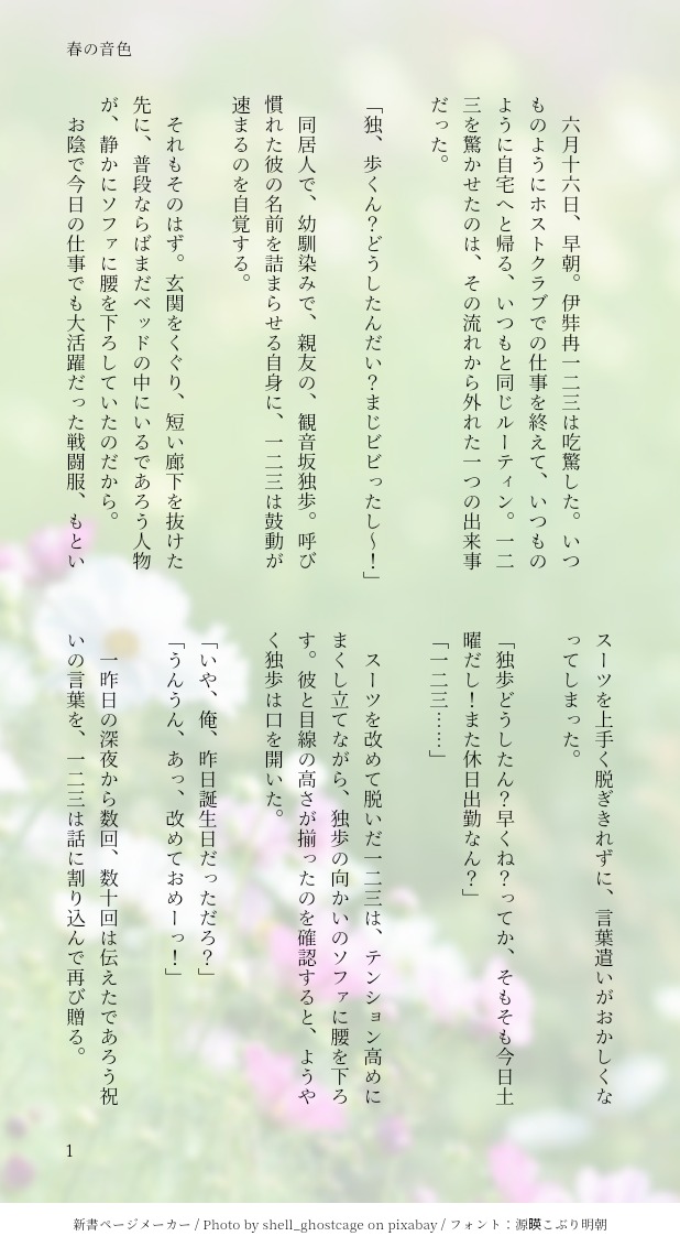 @ngy0426☆quiet followDONE独歩誕生日おめでとう、大大大遅刻ですが心は込めました。独寂前提の独+ひふです。 #ヒプノシスマイク hypnosisMike #伊弉冉一二三 izanami1,2,3 #観音坂独歩 kannonzakaDokpo #独寂 solitude show all(+7 images) Tap to full screen (size:618x1132).Repost is prohibited Let's send reactions! freqpopularsnackothersPayment processing Replies from the creator Follow creator you care about!☆quiet follow @ngy0426MAIKING雰囲気だけが全て。 @ngy0426DONEどちらの君も、 @ngy0426DONE後ろ向きな君のポジティブに、いつも救われている。 @ngy0426DONE沢山のおめでとうを、 @ngy0426DONEやっぱり隣は、 @ngy0426DONEオレンジ色が似合うキミは、きっと紫色も塗り替えられる。心を込めて99本のひまわりを――。一二三誕生日おめでとう🎉✨分かりにくい表現ですが愛は注ぎました。 related works ししゃもDOODLE #ヒプノシスマイク #ヒプマイ #碧棺左馬刻 ししゃもDOODLEおつかれさま#ヒプノシスマイク #ヒプマイ #観音坂独歩 monoDONEアクリルフィギュアになりました。BOOTHにて取り扱い中… ♩♩♩DOODLE帝統くん onepiece_belleDONEシンジュク最強ホスト✨🥂✨#ヒプノシスマイク#ヒプマイ#伊弉冉一二三 ta_ru_mi_DOODLEさっきの塗った。練習。 emuDOODLEひふみん UmioDOODLE pocket0080CAN’T MAKE #ヒプノシスマイクいちにいに「いってらっしゃい!」って言われたい人生だった最近絵が描けねぇ(´•ω•̥`)