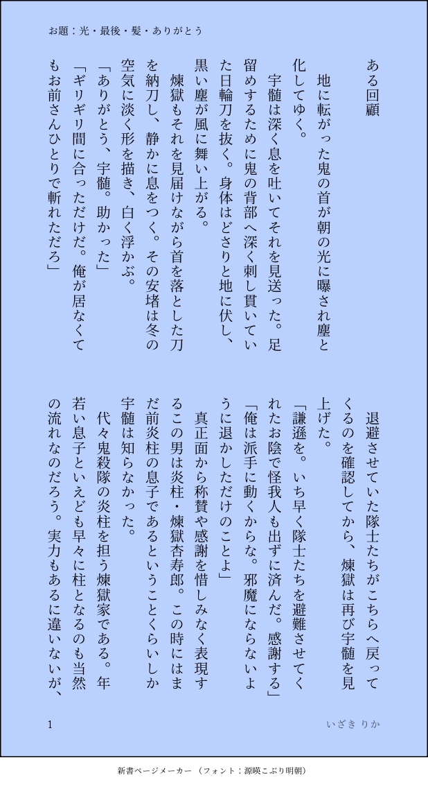 rica_km☆Тайно следоватьСДЕЛАНОドロライ最終回のお題をお借りして投稿していたものを、こちらにログとして残しておこうと思いますお題:光・最後・髪・ありがとう大正軸宇煉、💎視点🔥の任務へ加勢に赴いた💎。初めて目の当たりにした🔥の実戦で、その実力と姿勢に目を奪われる показать все (+ 3 изображений) Нажмите, чтобы открыть (размер: 618 x 1132) в полноэкранном режиме.Репост запрещен Отправим отзывы! частотапопулярныйлегкая закускадругиеПроцесс оплаты Ответы от создателя Следуйте за нами тайно!☆Тайно следовать rica_kmПРОГРЕССAV男優宇煉。いい関係になったのに付き合っているわけでもない2人。煉獄への気持ちが恋であると自覚した宇髄。仲の良いセフレのような関係から恋人へと発展するために虎視眈々と計画を練る……、そのちょっと手前までのチラ見せです※このチラ見せにエロはないですが、🔞シリーズなのでパスワード入力をお願いします18歳以上ですか? y/n 5635 rica_kmСДЕЛАНОドロライ最終回のお題をお借りして投稿していたものを、こちらにログとして残しておこうと思いますお題:光・最後・髪・ありがとう大正軸宇煉、💎視点🔥の任務へ加勢に赴いた💎。初めて目の当たりにした🔥の実戦で、その実力と姿勢に目を奪われる 4 rica_kmМИМО詳細設定(大正現代の別、年齢職業など)全て不詳の宇煉、幾度目かの秘事表現的に劣情を煽るような🔞要素はありませんが、シチュエーション的に濡れ場のためワンクッションのんびり宇煉ワンドロワンライ第1回のお題で書いたまま温存していたもののお蔵出しです。12/6にXにて🏷️なし投稿したものと全く同じ内容ですが、こちらはアフタータグ(#1dwuren_af) を使用しての再投稿です rica_kmСДЕЛАНОドロライのお題をお借りしましたお題:綱渡り・拒む #1dwuren長く友人関係だった宇髄と煉獄が付き合いはじめて数ヶ月。デ一ト中2件目のバーで煉獄が宇髄に見せたのは、性的同意を記録するサイトだった。年齢不詳設定、全8頁 8 rica_kmИЗГОТОВЛЕНИЕ龍宇煉、人外パラレル。人里近い山に棲む龍・宇髄と煉獄は麓の村の守り神として山の祠に祀られており、龍の角と尾がある人身の姿で静かに暮らしている。煉獄は時折人と交流を持つほど人間好きだが、宇髄はあまり関わろうとはせず、不遜な人間を決して赦さない厳しさを持つ。宇髄の人間への冷淡さ、煉獄の霊力不足による人身の小ささと記憶の欠落……、それらは過去の出来事に起因していた。 10 rica_kmПРОГРЕСС・AV男優宇煉3話目チラ見せ3-023-01の続きパートです。公開部分は完全着衣で工口要素皆無ですが、このシリーズ全体が🔞なのでパスワード入力必須です1〜2話未読の方は支部で内容を確認してからお読みください。大変お下劣な下ネタシリーズでエロくはないためヌキ目当てだとガッカリします😂・18歳以上ですか?→ y/n 5985