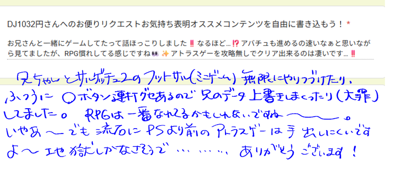 🍪🍪🍪☆こそフォロお知らせリクボくん返信です タップで全画面(原寸:1217x517)無断転載禁止 リアクションをたくさん送って応援しよう! よく使う人気おやつその他支払処理中 作者からのリプライ 気になる人をどんどんフォローしよう!☆こそフォロ 🍪🍪🍪お知らせリクボくん返信です 🍪🍪🍪お知らせリクボくん返信です 🍪🍪🍪お知らせリクボくん返信です 🍪🍪🍪お品書きリクボくん返信です 🍪🍪🍪お知らせリクボくん返信です 🍪🍪🍪お知らせリクボくん返信です おすすめ作品 アオヒトヒラらくがき連載中の『龍よ花よ』第1話の番外漫画です⚠️🔞※18歳以上、かつ1話を読まれた方のみご覧いただけます※※18歳未満、高校在籍の方は見ないでね※パスワード:『第1話で龍成と蓮美が最後にいた場所は?漢字と平仮名で4文字』 5 あすみネタバレがき夏げんみ✖自陣endの絵 trpg_yuraお知らせ⋆⸜ 𝗖𝗼𝗖 思い立って5分で回せるデートシナリオ第1弾!魔法使いの遊園地編 ⸝⋆ᴋᴘ/ᴋᴘᴄ まぐろさん / ロンリネス🧙♀️ᴘʟ/ᴘᴄ ゆら / 鈴谷 真白🐰🎡 シナリオクリアおさまじょ継続で遊園地行ってきた‼️前回かは中学生に成長した真白とずっと優しいお姉さんのかわおもろいやり取り永遠に見ていたい気持ち🫶🏻🎶次も楽しみ😽🤍「私、中学生だからね!」 2 @maaできた19ページ目:吸血鬼のパロ漫画 シュナルルhttps://xfolio.jp/portfolio/maa_nonbiri/works/3790332 ユーリ自主練2j3j・nmmn・sikさん夢。主人公名無し容姿描写無しで「君」呼び。二人でベランダにいるだけです。ロマンチックが恥ずかしいsikさん。初書きであんまり自信ないので読まなくてもいいです…。ついった、しぶにはnmmnではおりません。ここにしかいません。 2526 backdoor_0103らくがき커미션 白ゲコ(aktkg)できたバケダンのヤミラミは上司に恵まれなくてかわいそかわいいhttps://www.nicovideo.jp/watch/sm44847348 wrwr_inscureらくがきมหากาพย์อิปเปห์ฮาคุแอบแซ้บ 63 ぱんつくろうらくがき学パ6い