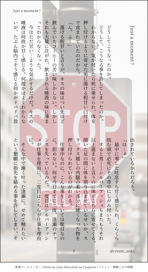 しじょー☆quiet followDONE銀博(♂)我慢できない大人と、いいかっこしいの大人。今宵はきっとサンバのリズムでカーニバル。 ##銀博 show all(+7 images) Tap to full screen (size:618x1132).Repost is prohibited Let's send reactions! freqpopularsnackothersPayment processing Replies from the creator Follow creator you care about!☆quiet follow しじょーDONE銀博(♂)R18リハビリややすけべ。パス:18歳以上?(回答3文字) 4 しじょーDONE銀博(♂) 7 しじょーDONE銀博(♂) 6 しじょーDONE銀博(♂) 4 しじょーDONE銀博(♂)R18私が育てました。パスワードヒント:18歳以上ですか?(3文字)#えっちな銀博新学期2023 6 しじょーPROGRESS銀博(♂)R18企画『えっちな銀博新学期2023』用に書き下ろしているものの冒頭先出し。テーマは『発情期』。パスワードヒント:18歳以上ですか?(3文字) 4163