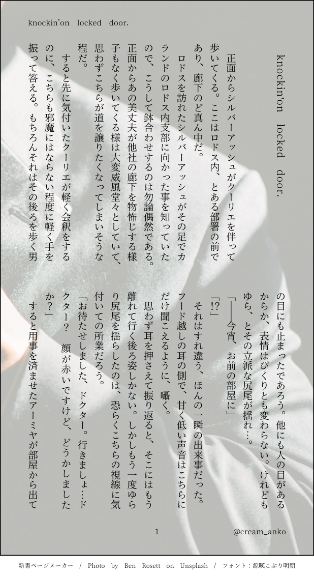 しじょー☆quiet followDONE銀博(♂)お互い支度をして部屋を訪れるのってえっちですね? ##銀博 show all(+5 images) Tap to full screen (size:618x1132).Repost is prohibited Let's send reactions! freqpopularsnackothersPayment processing Replies from the creator Follow creator you care about!☆quiet follow しじょーDONE銀博(♂)R18リハビリややすけべ。パス:18歳以上?(回答3文字) 4 しじょーDONE銀博(♂) 7 しじょーDONE銀博(♂) 6 しじょーDONE銀博(♂) 4 しじょーDONE銀博(♂)R18私が育てました。パスワードヒント:18歳以上ですか?(3文字)#えっちな銀博新学期2023 6 しじょーPROGRESS銀博(♂)R18企画『えっちな銀博新学期2023』用に書き下ろしているものの冒頭先出し。テーマは『発情期』。パスワードヒント:18歳以上ですか?(3文字) 4163