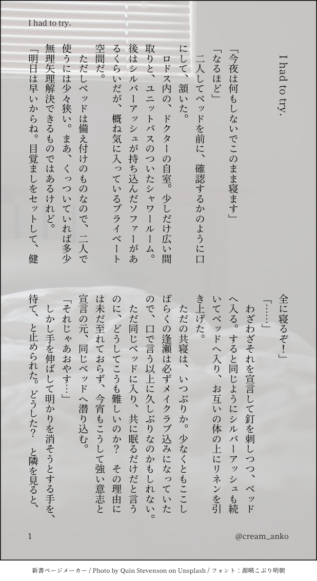 しじょー☆quiet followDONE銀博(♂)チャレンジ失敗!また来週! ##銀博1000文字チャレンジ show all(+3 images) Tap to full screen (size:618x1132).Repost is prohibited Let's send reactions! freqpopularsnackothersPayment processing Replies from the creator Follow creator you care about!☆quiet follow しじょーDONE銀博(♂)R18リハビリややすけべ。パス:18歳以上?(回答3文字) 4 しじょーDONE銀博(♂) 7 しじょーDONE銀博(♂) 6 しじょーDONE銀博(♂) 4 しじょーDONE銀博(♂)R18私が育てました。パスワードヒント:18歳以上ですか?(3文字)#えっちな銀博新学期2023 6 しじょーPROGRESS銀博(♂)R18企画『えっちな銀博新学期2023』用に書き下ろしているものの冒頭先出し。テーマは『発情期』。パスワードヒント:18歳以上ですか?(3文字) 4163 recommended works as_a_hirDONEややフライングだけど2021ハッピーバレンタイン&銀灰さんお誕生日おめでとう!な銀博。珍しくドクターの乙女度が高めかもしれない。 8 oyadoriDONE再掲の銀博♂SSです共犯者〜(ほのぼの)夜食銀博♂🥰 4 しじょーDONE銀博(♂)パンツの話。以前は気にもしなかったことが、好きになって、意識が変わって行く。 6 mituguuSPUR ME【銀博♂】花を吐き続けるやまいになった博の話|博の顔はボカシ気味|まだ途中なのでシリをばしばし叩いてやってくださいまし|なつかしいネタをやってみたかったなどと供述しておry 2646 mituguuPROGRESS【銀博♂】銀灰の誕生日を忘れて自分を誕プレにする博の話|ぽいぴく前作より続き|🔞がっつりえちえちしてる|中途半端ですが書き終わらなかったので更に続く|長めなのでお時間あるときに 6347 しじょーDONE銀博(♂)セクシーは用法用量を守り、適切にご利用ください。 7 しじょーDONE銀博(♂)三日熟成した博とソムリエ銀灰 6 mituguuMOURNING【銀博♂】双子がいる銀博·シラユキヒメがベースです|博がタヒり銀灰が隠してたラブレターが発掘される話|○はお好きな名前でどうぞ|やりたい放題ですみません 7256 しじょーDONE銀博(♂) 5