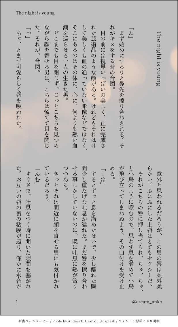 しじょー☆quiet followDONE銀博(♂)そろそろベッドから出ようと言いましたがね? ##銀博1000文字チャレンジ show all(+2 images) Tap to full screen (size:618x1132).Repost is prohibited Let's send reactions! freqpopularsnackothersPayment processing Replies from the creator Follow creator you care about!☆quiet follow しじょーDONE銀博(♂)R18リハビリややすけべ。パス:18歳以上?(回答3文字) 4 しじょーDONE銀博(♂) 7 しじょーDONE銀博(♂) 6 しじょーDONE銀博(♂) 4 しじょーDONE銀博(♂)R18私が育てました。パスワードヒント:18歳以上ですか?(3文字)#えっちな銀博新学期2023 6 しじょーPROGRESS銀博(♂)R18企画『えっちな銀博新学期2023』用に書き下ろしているものの冒頭先出し。テーマは『発情期』。パスワードヒント:18歳以上ですか?(3文字) 4163
