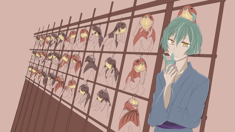夏に描いてたやつ。張り子の金魚がすき。夏祭りで待ち合わせしてるのになかなか相手が来なくてムスッとしてる悠くんみたいな。スマホカバーうさぎだったら可愛いな的な。