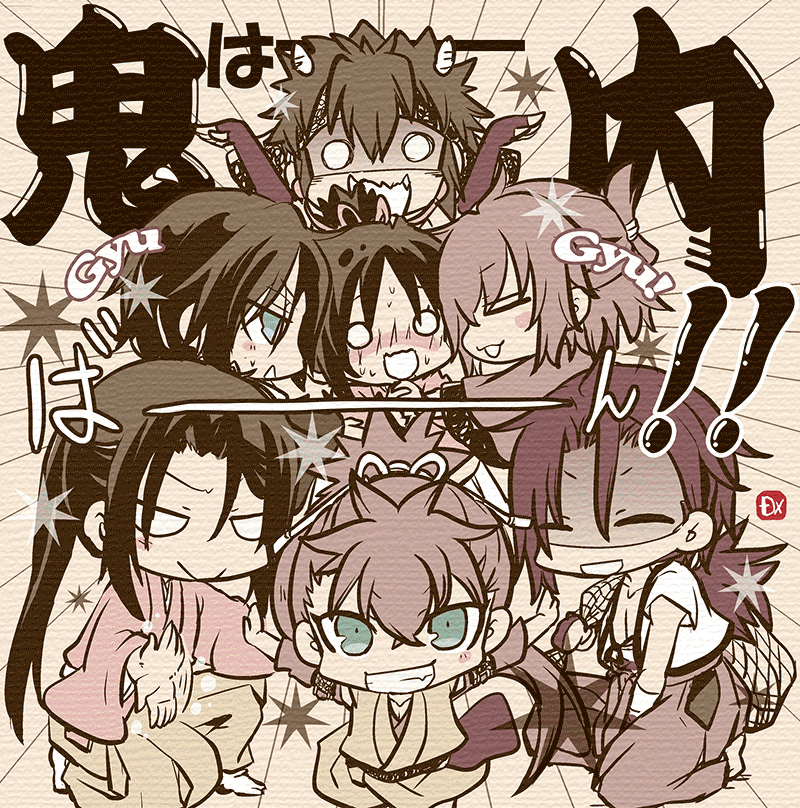 隊士達の「鬼は内!」(2枚)