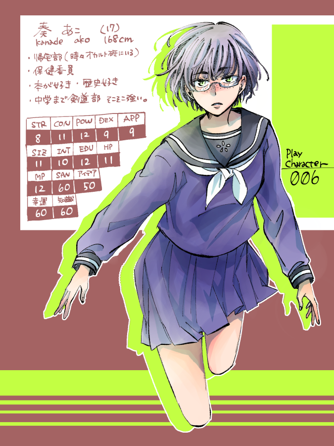 あこちゃん。出目良すぎ(11c2fだって…)つよつよマイペース女子高生。棒状の武器らしきものが好き。つよつよすぎて安定感ありまくりだったのでまた連れていきたい~。キャラデザも好みの感じにできたのでにこにこです。かわいい(自画自賛)