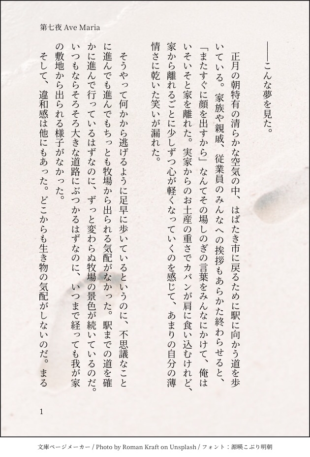 puchimu_gs4☆quiet followDONE「第七夜 Ave Maria」微ホラーです。こちら「みかマリ夢十夜」の7話目になります。 show all(+11 images) Tap to full screen (size:630x928).Repost is prohibited Let's send reactions! freqpopularsnackothersPayment processing Replies from the creator Follow creator you care about!☆quiet follow puchimu_gs4DONE夜ノ介くん誕生日カウントダウンSS 4 puchimu_gs4DOODLE御影先生生誕祭2024 8 puchimu_gs4DONE「第一夜 麗人」「みかマリ夢十夜」の1話目になります。 7 puchimu_gs4DONE「第七夜 Ave Maria」微ホラーです。こちら「みかマリ夢十夜」の7話目になります。 12 puchimu_gs4DONE「第四夜 秋色の魔法使い」「みかマリ夢十夜」での4話目になります。 6 puchimu_gs4DONE「第十夜 夢の行方」「みかマリ夢十夜」の最後のお話になります。こちらは3人の合作になります。そして、最終夜までお付き合いいただき、本当にありがとうございました。 4