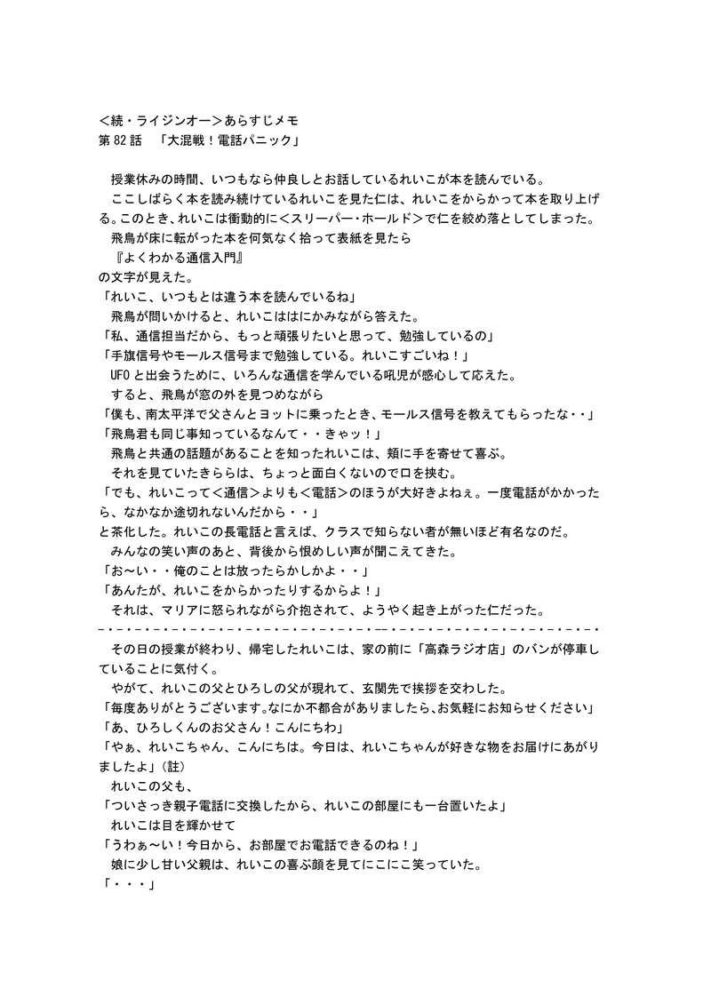 UZ18SnZ7Z3G0v0t☆quiet followMEMO<続・ライジンオー>あらすじ案第82話 『大混戦!電話パニック』公式のあらすじがあるけれど、推しの主役回なので大幅に手を入れてみた贋作です。饒舌になってしまいました・・。 show all(+5 images) Tap to full screen (size:1240x1754).Repost is prohibited Let's send reactions! freqpopularsnackothersPayment processing Replies from the creator Follow creator you care about!☆quiet follow UZ18SnZ7Z3G0v0tDONE「絶対無敵ライジンオー」の作文第20話エピローグ『僕たちは地球防衛組』(完結)作者が初めてつくった<二次創作>の修正版です。興味のある方はご覧ください。パスワードはraijinohです。 7 UZ18SnZ7Z3G0v0tDONE「絶対無敵ライジンオー」の作文第19話第6章 帰還『友達』作者が初めてつくった<二次創作>の修正版です。興味のある方はご覧ください。パスワードはraijinohです。 4 UZ18SnZ7Z3G0v0tDONE「絶対無敵ライジンオー」の作文第18話第6章 帰還『ふたたび、令和元年(2019)7月20日 土曜日』作者が初めてつくった<二次創作>の修正版です。興味のある方はご覧ください。パスワードはraijinohです。 8 UZ18SnZ7Z3G0v0tCAN’T MAKE飛鳥君の誕生日の絵が間に合わなかったので、先日描いた「仁マリ」に、過去画像を改造して合わせたもの。れいこに怒られるので、パスワードを設定した。PASS<あすマリ> 2 UZ18SnZ7Z3G0v0tDONEこちらは、表情を変えて整備したものをのっける。 UZ18SnZ7Z3G0v0tCAN’T MAKE恐らく、最初で最後の「大人の飛鳥とマリア」。参考にした絵が<ロー・ポニー・テイル>だったので、それを範にした。pass wardは<あすマリ>である。 recommended works keu_raDOODLE即落ち2コマってやつです 𝙃𝘼𝙈DONE10月スパーク新刊流三すけべサンプル18↑(y/n) 3 紗緒太_2525MOURNINGヨシ👉 UH5g4kojiruDOODLE冬道 葉くん🍁 itokiriDONEイデ監誕生日おめでとうの話。付き合ってない 2260 oyunoumiDOODLE 3 KotakotoDONE2024年10月に(?)リクエストいただいておりました、銀時くんのオ/ニーです攘夷銀高で描かせていただきましたリクエストありがとうございました!! 2 kurokimi23DOODLE稽學童の姿 kuiaratameyo_45DOODLE羂髙♀ 自覚うんぬんの話※女体化、諸々注意 pass限y/n
