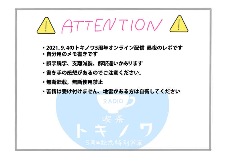 mumei_t12e☆quiet followMEMOトキノワ5周年特別営業オンライン配信のレポイラスト(再投稿)注意事項をよく読んで大丈夫な方だけ見てください。 #土岐隼一 hayatoToki show all(+2 images) Tap to full screen (size:3507x2480).Repost is prohibited Let's send reactions! freqpopularsnackothersPayment processing Replies from the creator Follow creator you care about!☆quiet follow mumei_t12eDOODLE土岐さん詰め合わせイラストログ25 27 mumei_t12eMEMOしーぷい39回のイベントレポです注意事項をよく読み大丈夫の方のみお進みください 3 mumei_t12eMEMO2025年5月4日に開催されたbirthdayliveのレポです。注意事項をよく読み大丈夫な方のみ見てください。 7 mumei_t12eDOODLE土岐さん詰め合わせイラストログ24 22 mumei_t12eMEMO朗読劇の好きな所ピックアップ 2 mumei_t12eDOODLE土岐さん詰め合わせイラストログ23 24 related works mumei_t12eDOODLE土岐さんログ詰め合わせ11映像やラジオのネタバレがあるのでご注意ください 21 坂島(@sinps1212)MEMO土岐隼一特製トレーディングカード「GAZE」で遊びたい人向けの、アレンジ(非公式)ルールを作りました。ファンによる個人作成のため、公式様への問い合わせなどはせず、個人の範囲で遊んで下さい。プレイマットはA4サイズで印刷してください。線画の方はアレンジしたい人向けです。連絡なしで自由に使って下さい。表は勝ち負けの判定が分からない人向け。 8 mumei_t12eMEMO土岐隼一さんTime With Youの公開イベント抜粋レポ。注意事項をよく読んで大丈夫な方だけお進みください。 3 mumei_t12eMEMO王様ジャングル298回(土岐さん/濱野さんゲスト)のレポ漫画です。注意事項をよく読んで大丈夫な方だけみてください。こちらは個人の対面レポもあるためパスワード制となってます。【パスワード】王様ジャングル王国の国王様ポーヴォワール・チェザーレ3世のニックネームは?(ひらがなで4文字) 10 mumei_t12eDOODLE土岐さん詰め合わせイラストログ20 24 mumei_t12eDOODLE土岐さんの詰め合わせログ18イベントや映像のネタバレあるので見る方はご注意ください。 22 mumei_t12eDOODLE土岐さんの詰め合わせログ17映像やイベントのネタバレがあるので見る方はご注意ください 23 mumei_t12eDOODLE土岐隼一さんの写真集の感想です。注意事項をよく読んで大丈夫な方だけ見てください。誤字脱字も多分あるので見つけてもスルーしてください 3 mumei_t12eDOODLE土岐さん詰め合わせログ13映像やイベントのネタバレがあるのでご注意ください。 22 recommended works mumei_t12eDOODLE土岐さんログ詰め合わせ1(再投稿)映像やラジオのネタバレがあるのでご注意ください 24 mumei_t12eMEMO土岐隼一さんの2021ニューイヤートーク&ミニライブのレポ漫画です。注意事項をよく読んで大丈夫な方だけお進みください。#土岐ニューイヤー 4 mumei_t12eDOODLE土岐さんログ詰め合わせ3(再投稿)映像やラジオのネタバレがあるのでご注意ください 23 mumei_t12eDOODLE土岐さんログ詰め合わせ6(再投稿)映像やラジオのネタバレがあるのでご注意ください 21 mumei_t12eMEMO2021年に行われたSideMのライブレポ抜粋(アルテ中心)の再投稿+@注意事項をよく読んで大丈夫な方だけお進みください。 7 mumei_t12eMEMO土岐さんの2022年1stライブ抜粋レポ(再投稿)注意事項をよく読んで大丈夫な方のみ見てください。 7 mumei_t12eDOODLE土岐さんログ詰め合わせ9(再投稿)映像やラジオのネタバレがあるのでご注意ください 21 mumei_t12eMEMO喫茶トキノワ300回特別配信(再投稿)注意事項をよく読んで大丈夫な方のみお進みください。 6 えちゃんMAIKING数年前に地球防衛部LOVEの5人を模写しました。