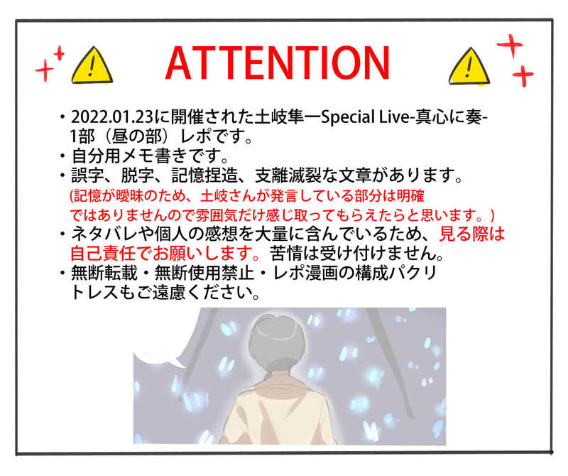 mumei_t12e☆quiet followMEMO土岐さんの2022年1stライブ抜粋レポ(再投稿)注意事項をよく読んで大丈夫な方のみ見てください。 #土岐隼一 hayatoToki show all(+6 images) Tap to full screen (size:1699x1423).Repost is prohibited Let's send reactions! freqpopularsnackothersPayment processing Replies from the creator Follow creator you care about!☆quiet follow mumei_t12eDOODLE土岐さん詰め合わせイラストログ25 27 mumei_t12eMEMOしーぷい39回のイベントレポです注意事項をよく読み大丈夫の方のみお進みください 3 mumei_t12eMEMO2025年5月4日に開催されたbirthdayliveのレポです。注意事項をよく読み大丈夫な方のみ見てください。 7 mumei_t12eDOODLE土岐さん詰め合わせイラストログ24 22 mumei_t12eMEMO朗読劇の好きな所ピックアップ 2 mumei_t12eDOODLE土岐さん詰め合わせイラストログ23 24 related works mumei_t12eDOODLE土岐さんログ詰め合わせ11映像やラジオのネタバレがあるのでご注意ください 21 mumei_t12eMEMO王様ジャングル298回(土岐さん/濱野さんゲスト)のレポ漫画です。注意事項をよく読んで大丈夫な方だけみてください。こちらは個人の対面レポもあるためパスワード制となってます。【パスワード】王様ジャングル王国の国王様ポーヴォワール・チェザーレ3世のニックネームは?(ひらがなで4文字) 10 mumei_t12eDOODLE土岐隼一さんの写真集の感想です。注意事項をよく読んで大丈夫な方だけ見てください。誤字脱字も多分あるので見つけてもスルーしてください 3 mumei_t12eDOODLE土岐さん詰め合わせログ13映像やイベントのネタバレがあるのでご注意ください。 22 mumei_t12eMEMO土岐隼一さんTime With Youの公開イベント抜粋レポ。注意事項をよく読んで大丈夫な方だけお進みください。 3 mumei_t12eDOODLE土岐さん詰め合わせイラストログ20 24 mumei_t12eDOODLE土岐さんの詰め合わせログ17映像やイベントのネタバレがあるので見る方はご注意ください 23 坂島(@sinps1212)MEMO土岐隼一特製トレーディングカード「GAZE」で遊びたい人向けの、アレンジ(非公式)ルールを作りました。ファンによる個人作成のため、公式様への問い合わせなどはせず、個人の範囲で遊んで下さい。プレイマットはA4サイズで印刷してください。線画の方はアレンジしたい人向けです。連絡なしで自由に使って下さい。表は勝ち負けの判定が分からない人向け。 8 mumei_t12eDOODLE土岐さんの詰め合わせログ18イベントや映像のネタバレあるので見る方はご注意ください。 22 recommended works 坂島(@sinps1212)MEMO土岐隼一特製トレーディングカード「GAZE」で遊びたい人向けの、アレンジ(非公式)ルールを作りました。ファンによる個人作成のため、公式様への問い合わせなどはせず、個人の範囲で遊んで下さい。プレイマットはA4サイズで印刷してください。線画の方はアレンジしたい人向けです。連絡なしで自由に使って下さい。表は勝ち負けの判定が分からない人向け。 8 mumei_t12eMEMOトキノワオンラインイベントレポート(再投稿)注意事項をよく読んで大丈夫な方だけ見てください。 4 mumei_t12eMEMO土岐隼一さんの2021ニューイヤートーク&ミニライブのレポ漫画です。注意事項をよく読んで大丈夫な方だけお進みください。#土岐ニューイヤー 4 mumei_t12eDOODLE土岐さんログ詰め合わせ3(再投稿)映像やラジオのネタバレがあるのでご注意ください 23 mumei_t12eDOODLE土岐さんログ詰め合わせ4(再投稿)映像やラジオのネタバレがあるのでご注意ください 21 mumei_t12eMEMOトキノワ5周年特別営業オンライン配信のレポイラスト(再投稿)注意事項をよく読んで大丈夫な方だけ見てください。 3 mumei_t12eMEMO土岐隼一さんと寺島惇太さんのコラボライブ2021抜粋レポです(再投稿)注意事項を読んで大丈夫な方だけお進みください。 4 mumei_t12eMEMO2021年に行われたSideMのライブレポ抜粋(アルテ中心)の再投稿+@注意事項をよく読んで大丈夫な方だけお進みください。 7 mumei_t12eDOODLE土岐さんログ詰め合わせ9(再投稿)映像やラジオのネタバレがあるのでご注意ください 21