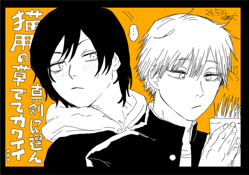 【ミリデン】ニャーコの猫草を選ぶデンジと『猫用の草真剣に選んでてカワイイ……』のミリ