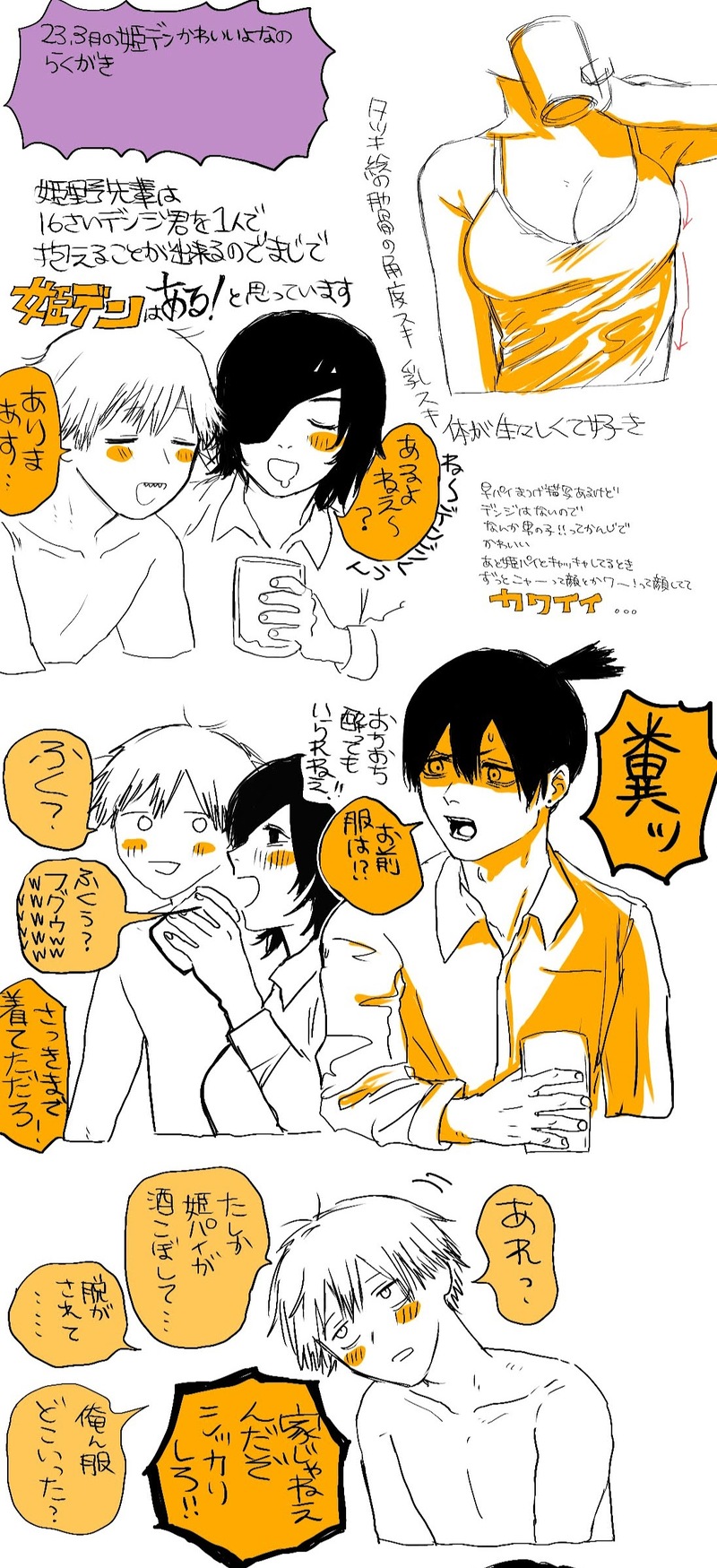 【未完・吉デンと姫デン】いまずっと原稿やってますからね浮気出来ないんですよね……の発作で描きました デ♀じゃないデンジ君が描きたい!あー描きたい!いうて描きました