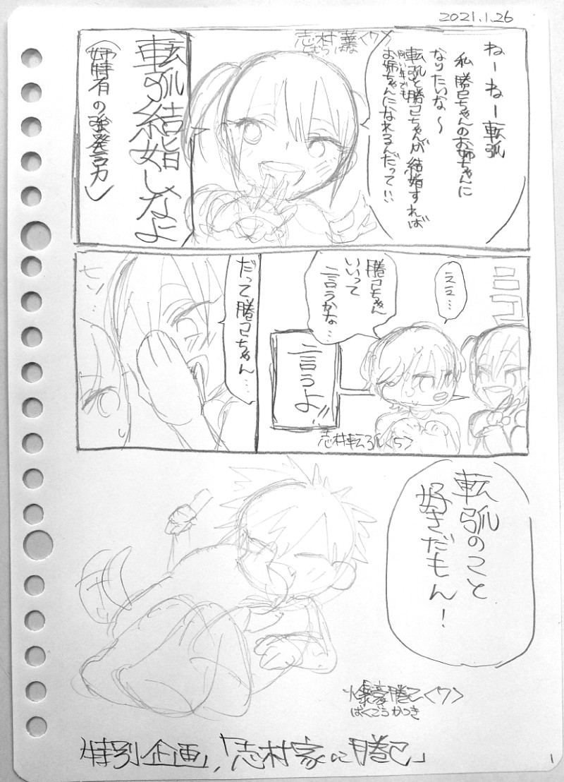 【転勝♀】「志村家に勝己」(転勝♀版)のネームを描きました。先天性女体化なのでワンクッションです。もちろん安心のハッピー仕様!