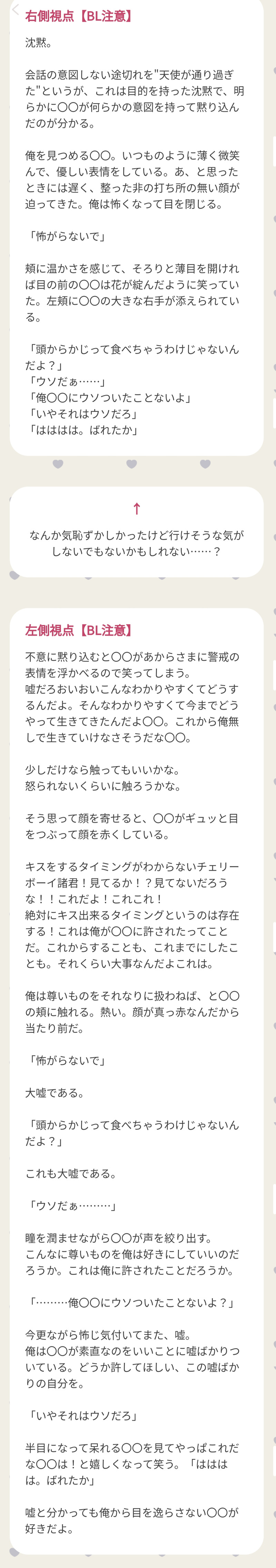 同カプの他の方の作品見てそれが受け視点で書いてあって結構衝撃を受けた⚡